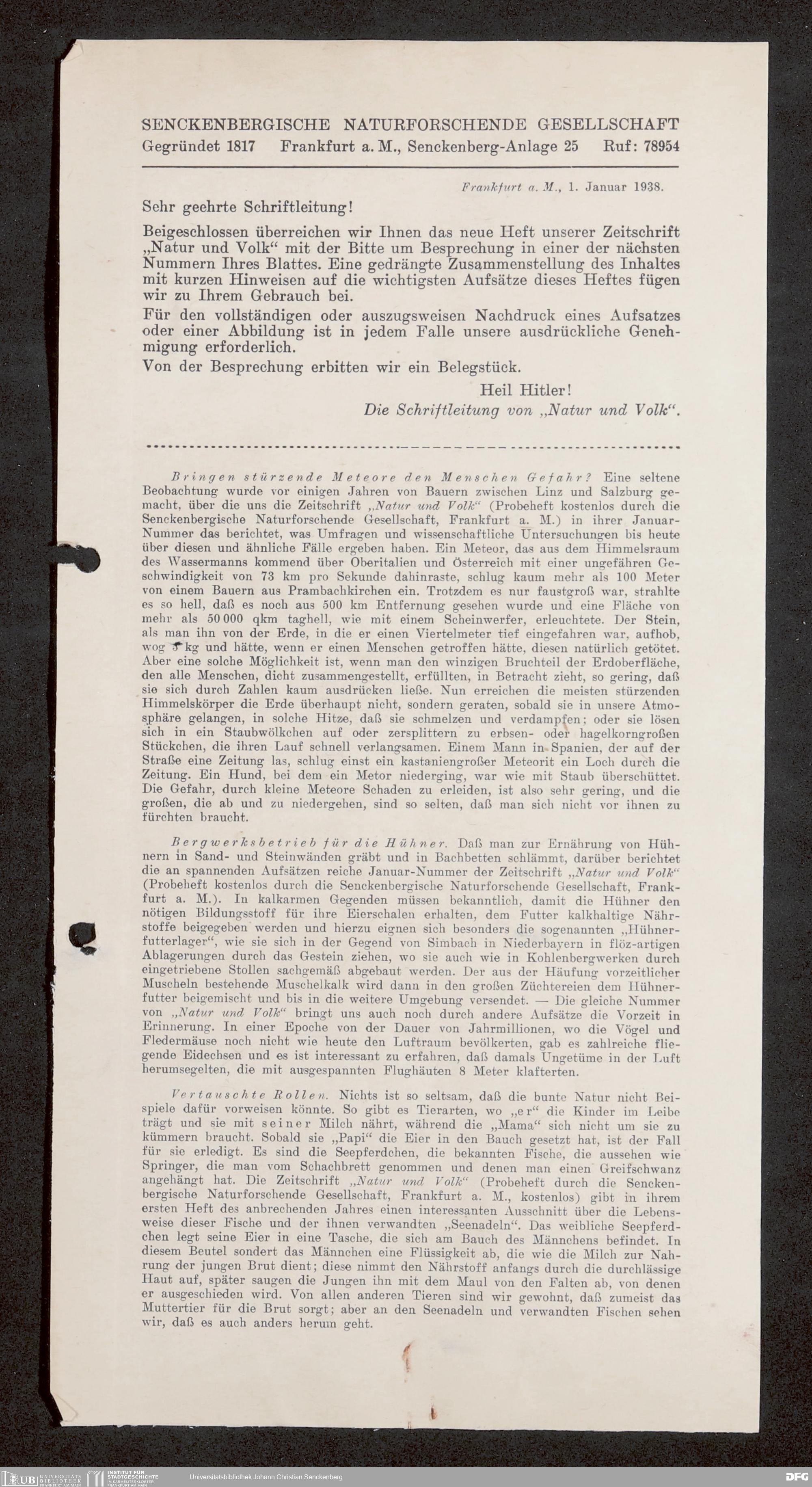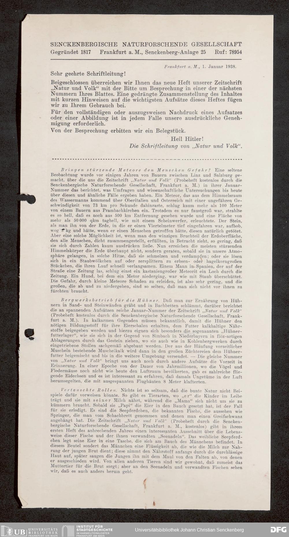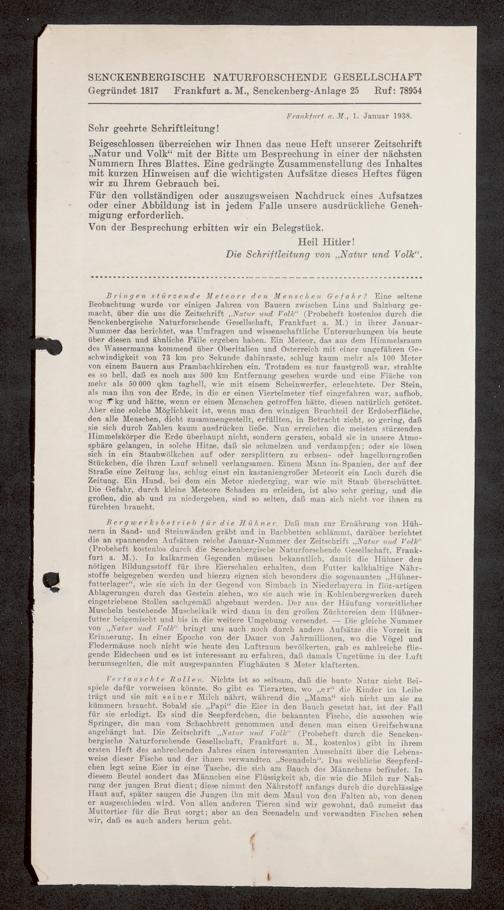 V176 Senckenberg Gesellschaft für Naturforschung, 647 - Rezensionen zu "Natur und Museum" bzw. "Natur und Volk"