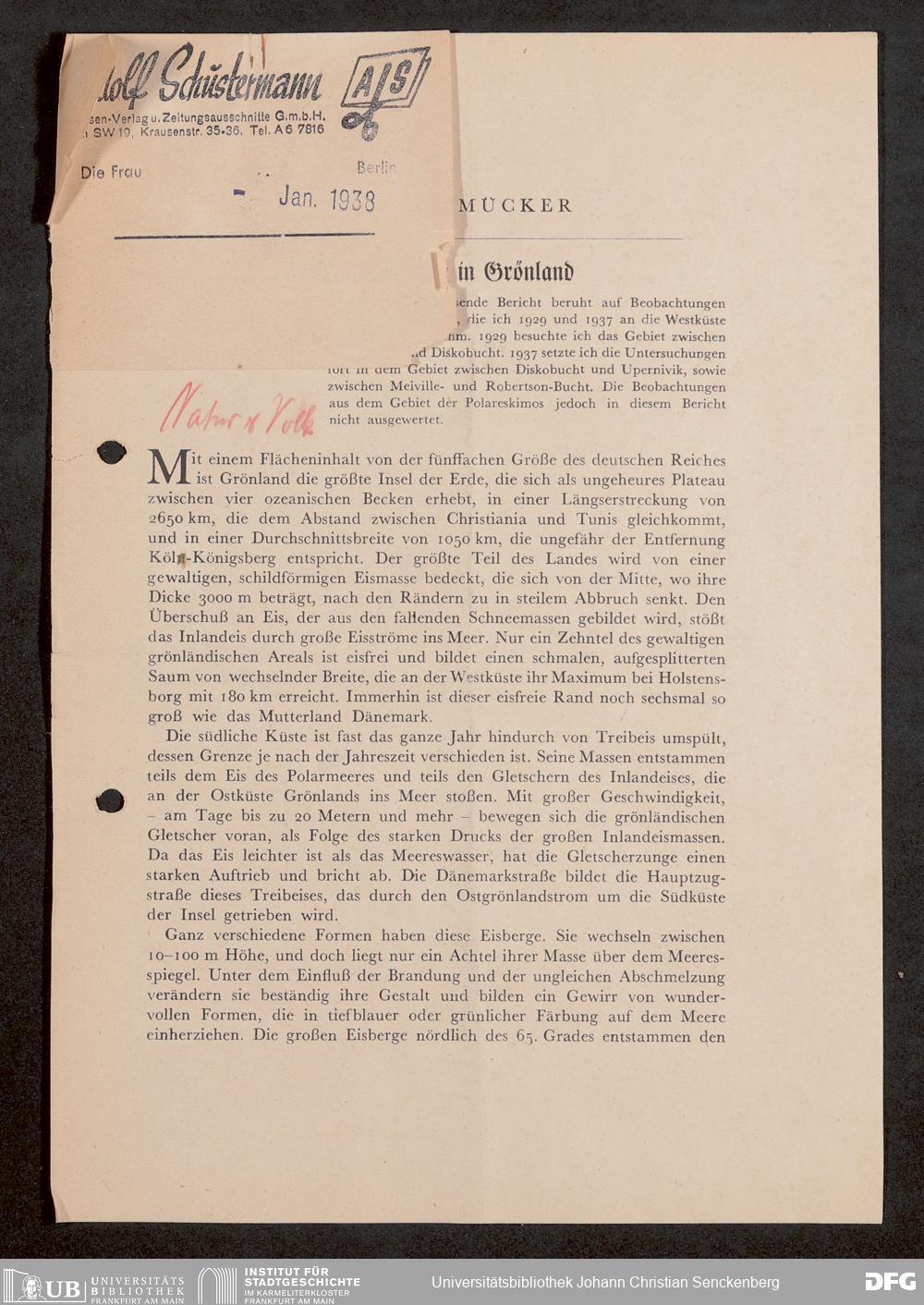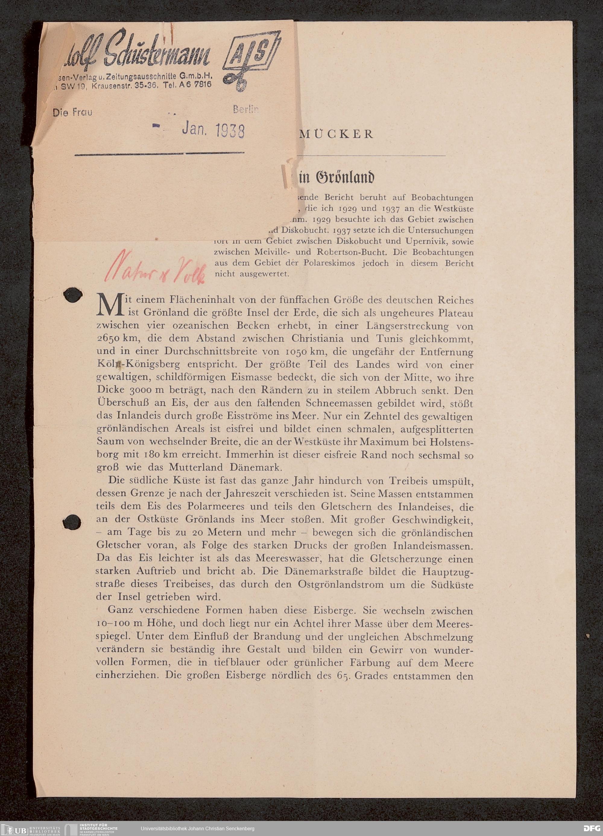 V176 Senckenberg Gesellschaft für Naturforschung, 647 - Rezensionen zu "Natur und Museum" bzw. "Natur und Volk"