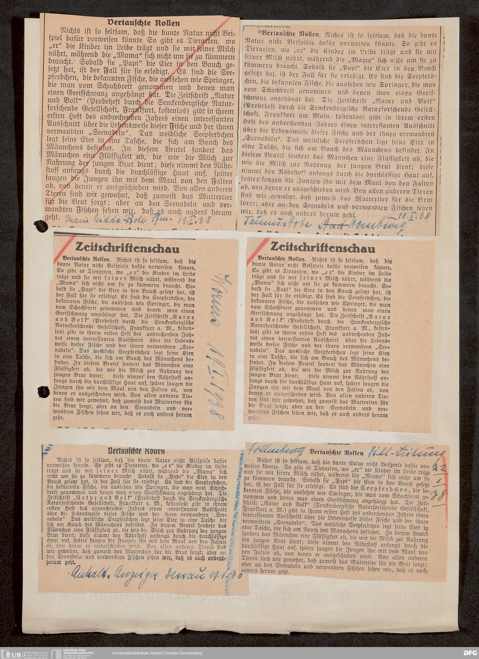 V176 Senckenberg Gesellschaft für Naturforschung, 647 - Rezensionen zu "Natur und Museum" bzw. "Natur und Volk"
