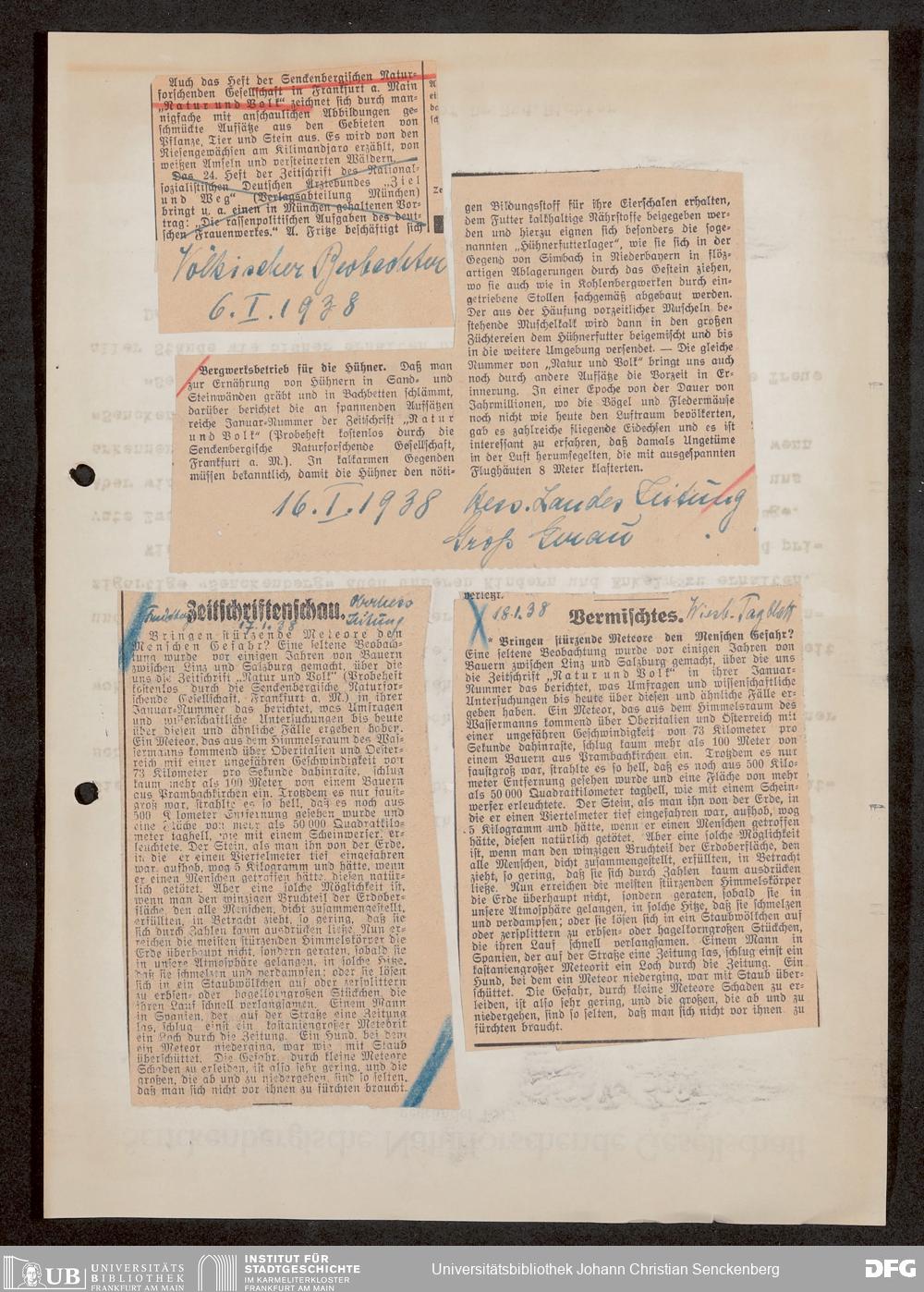 V176 Senckenberg Gesellschaft für Naturforschung, 647 - Rezensionen zu "Natur und Museum" bzw. "Natur und Volk"