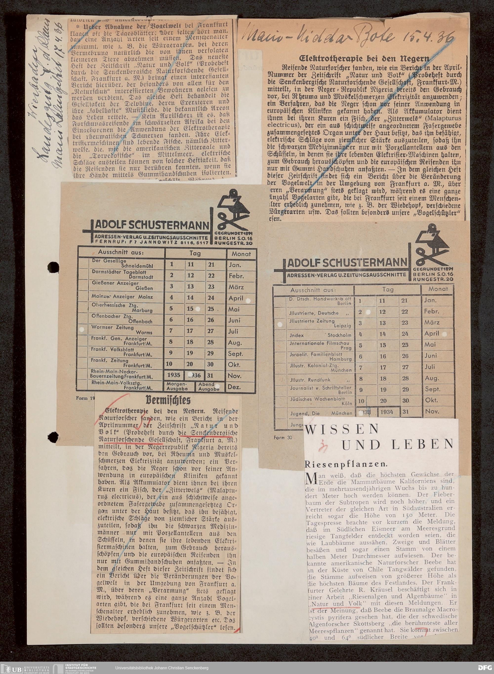 V176 Senckenberg Gesellschaft für Naturforschung, 647 - Rezensionen zu "Natur und Museum" bzw. "Natur und Volk"