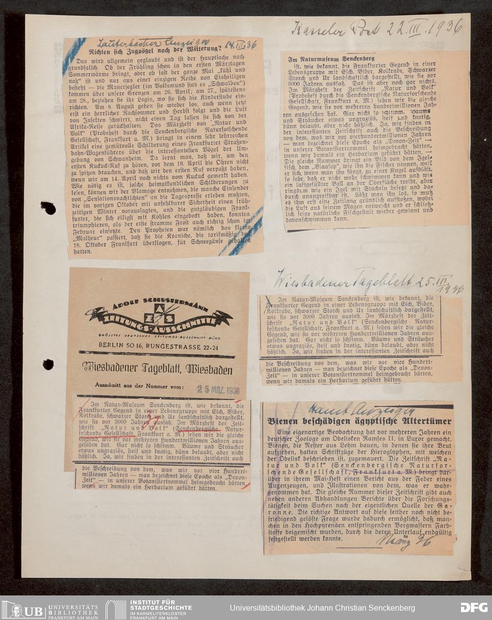 V176 Senckenberg Gesellschaft für Naturforschung, 647 - Rezensionen zu "Natur und Museum" bzw. "Natur und Volk"