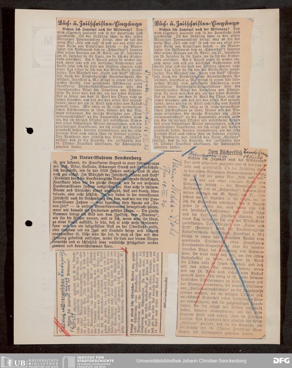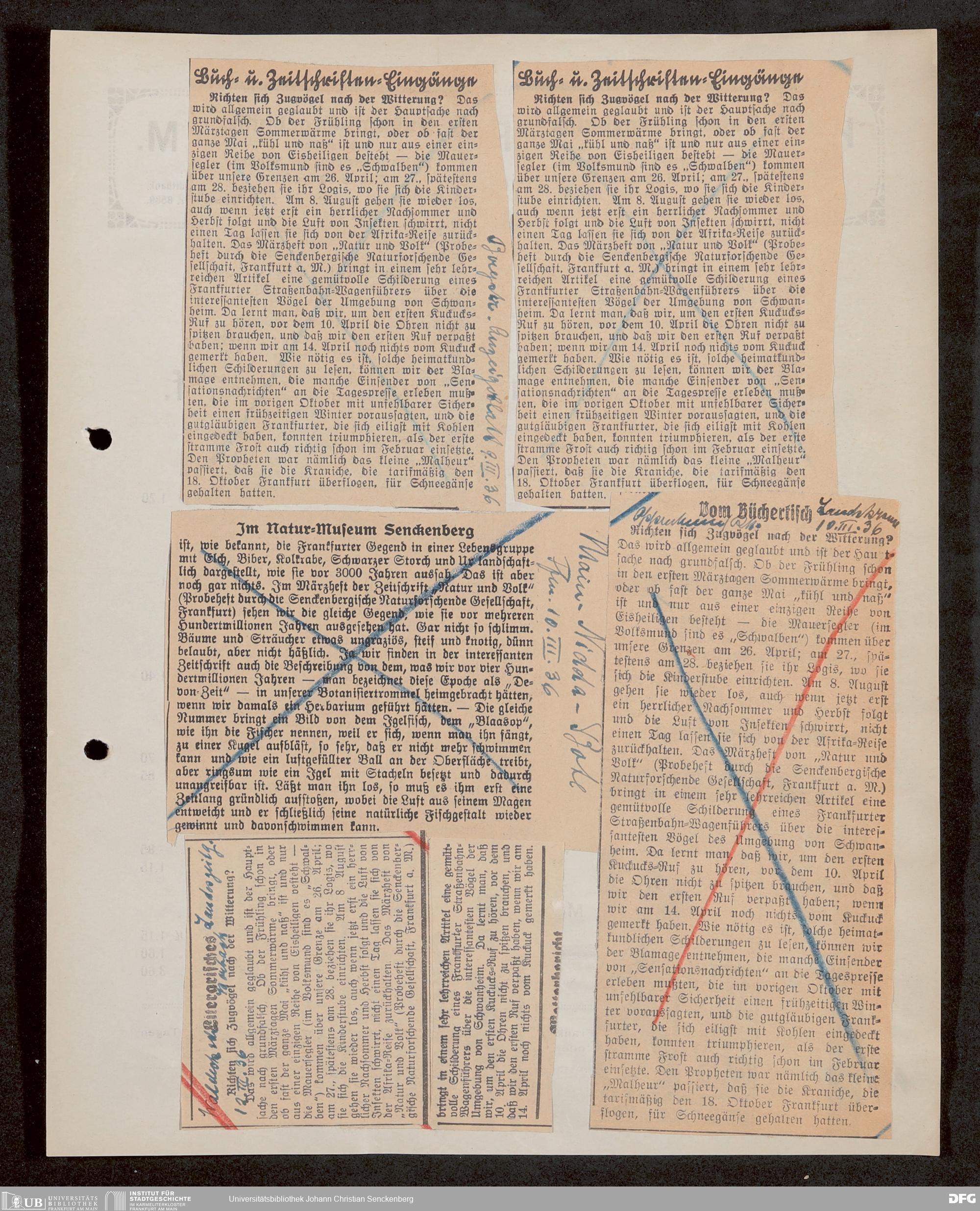 V176 Senckenberg Gesellschaft für Naturforschung, 647 - Rezensionen zu "Natur und Museum" bzw. "Natur und Volk"