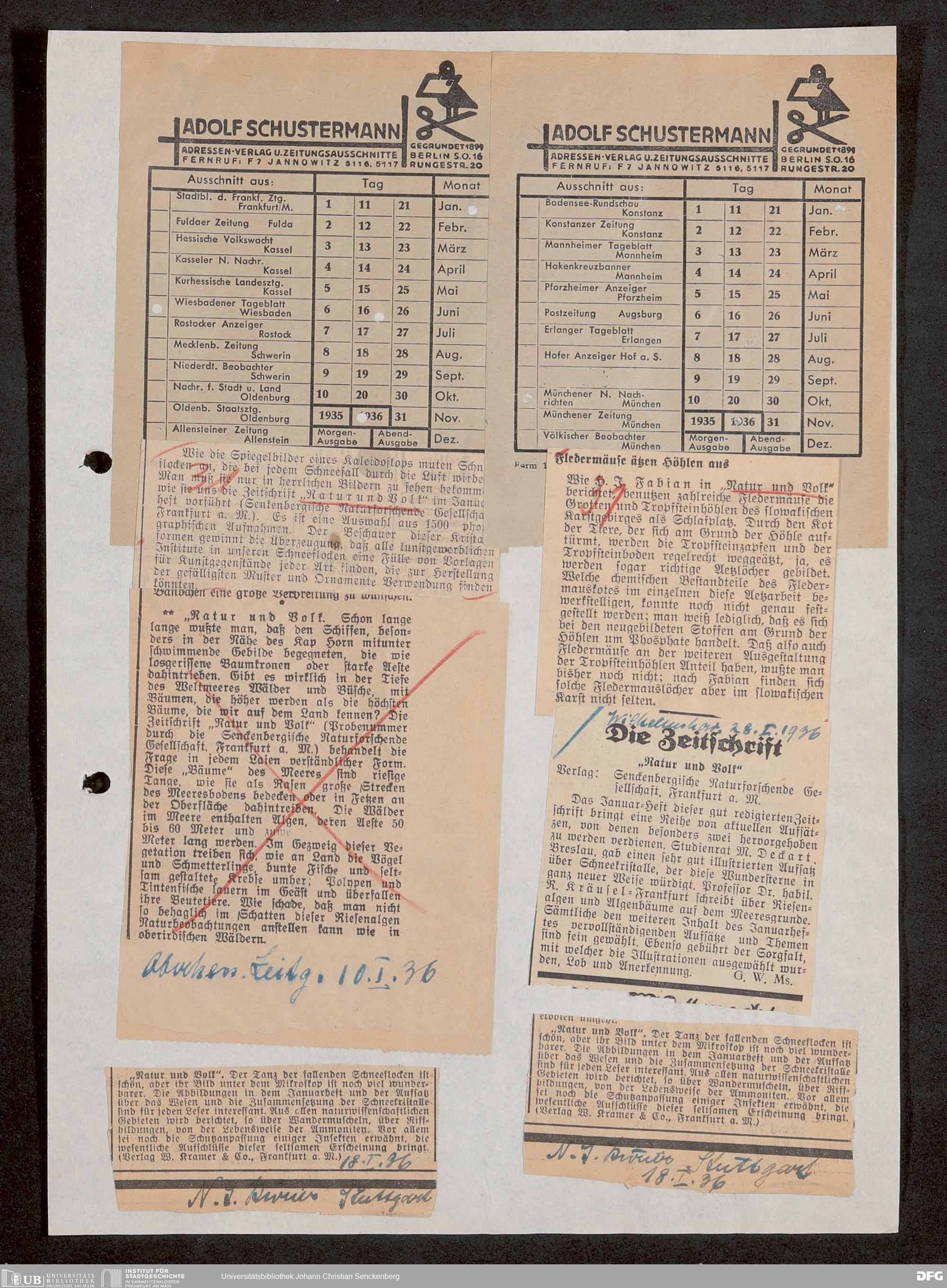 V176 Senckenberg Gesellschaft für Naturforschung, 647 - Rezensionen zu "Natur und Museum" bzw. "Natur und Volk"