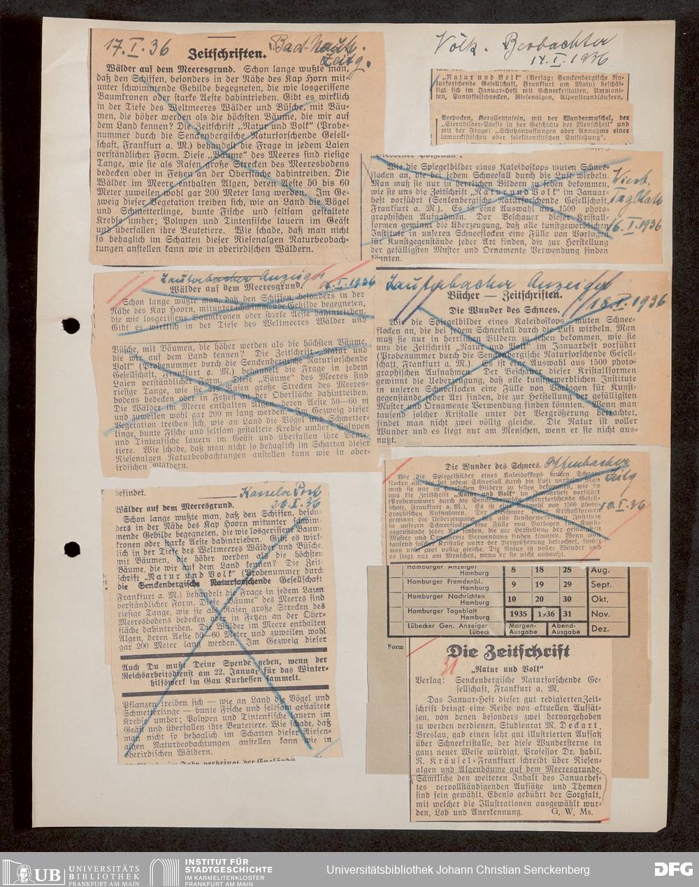 V176 Senckenberg Gesellschaft für Naturforschung, 647 - Rezensionen zu "Natur und Museum" bzw. "Natur und Volk"