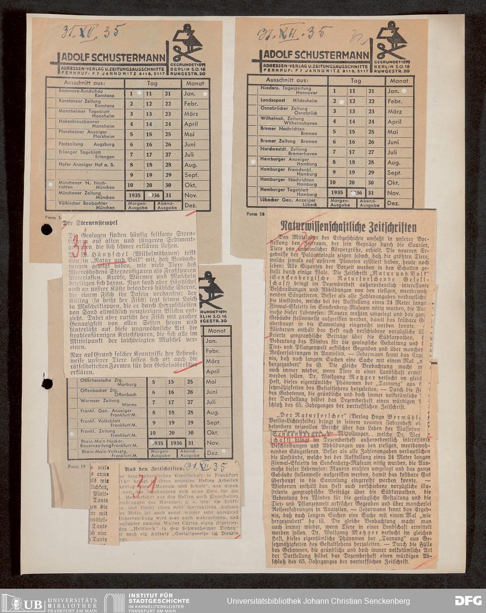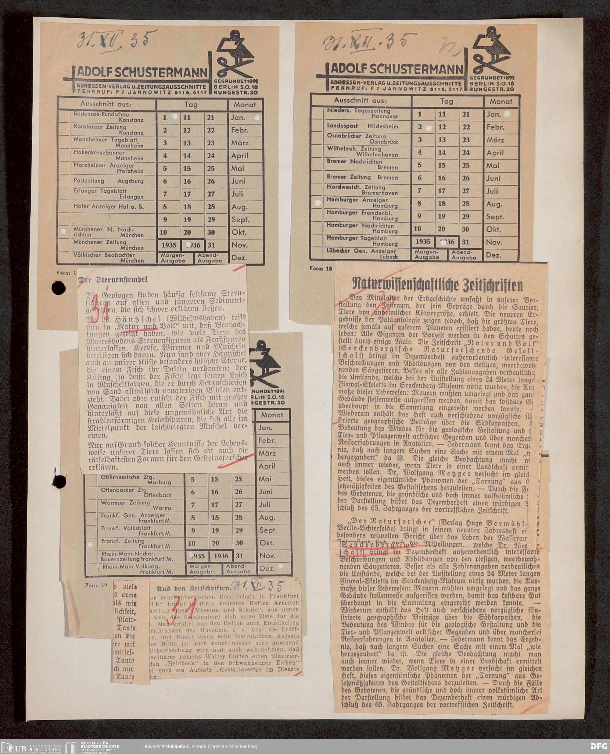 V176 Senckenberg Gesellschaft für Naturforschung, 647 - Rezensionen zu "Natur und Museum" bzw. "Natur und Volk"