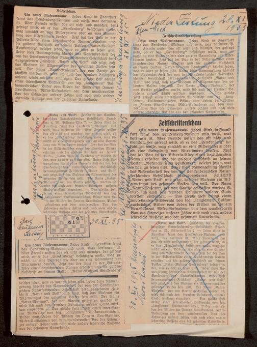 V176 Senckenberg Gesellschaft für Naturforschung, 647 - Rezensionen zu "Natur und Museum" bzw. "Natur und Volk"