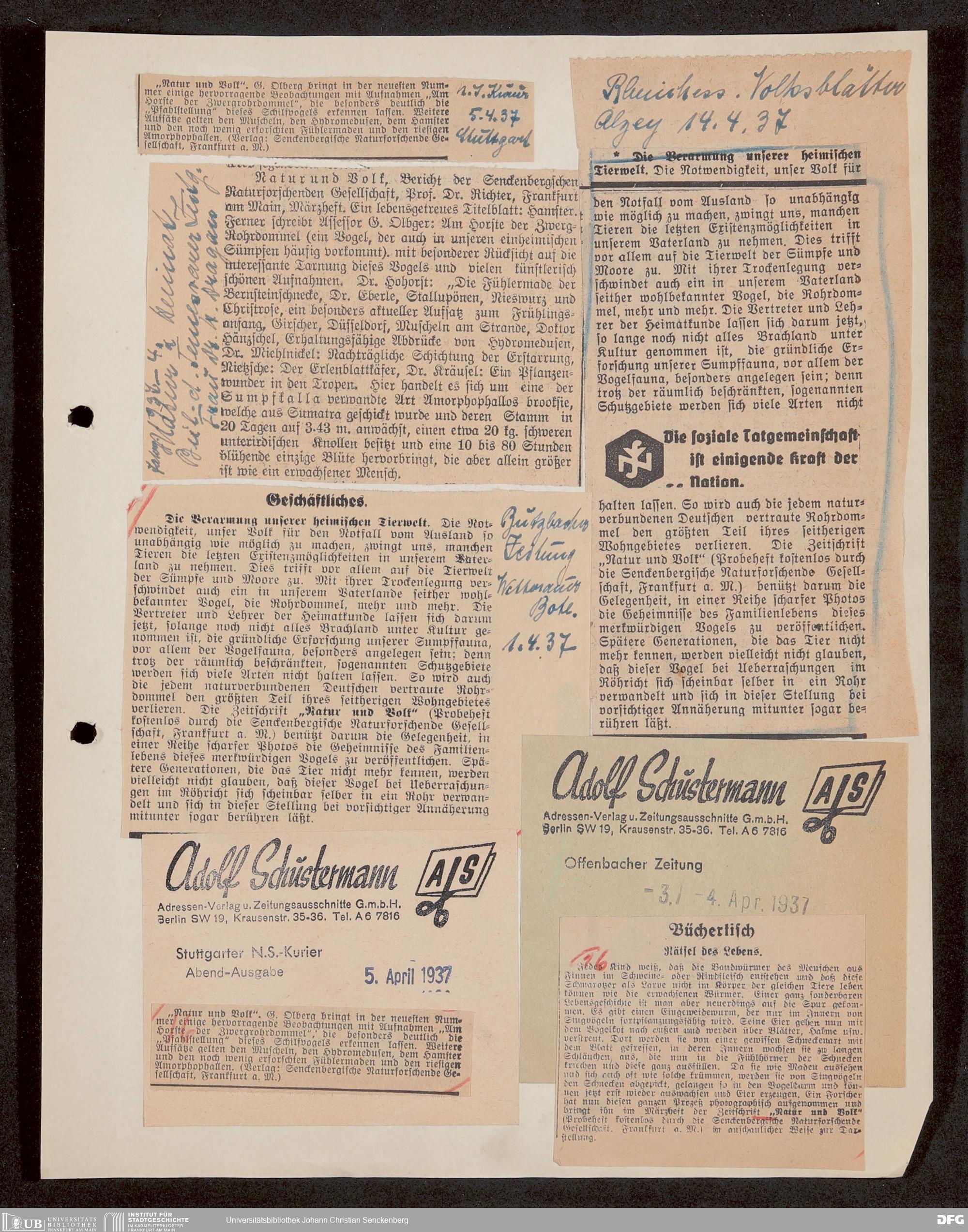 V176 Senckenberg Gesellschaft für Naturforschung, 647 - Rezensionen zu "Natur und Museum" bzw. "Natur und Volk"