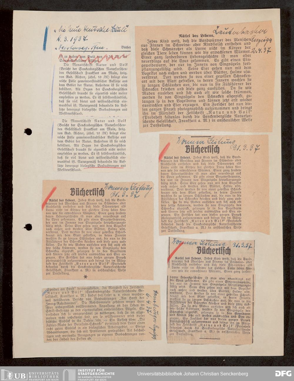 V176 Senckenberg Gesellschaft für Naturforschung, 647 - Rezensionen zu "Natur und Museum" bzw. "Natur und Volk"