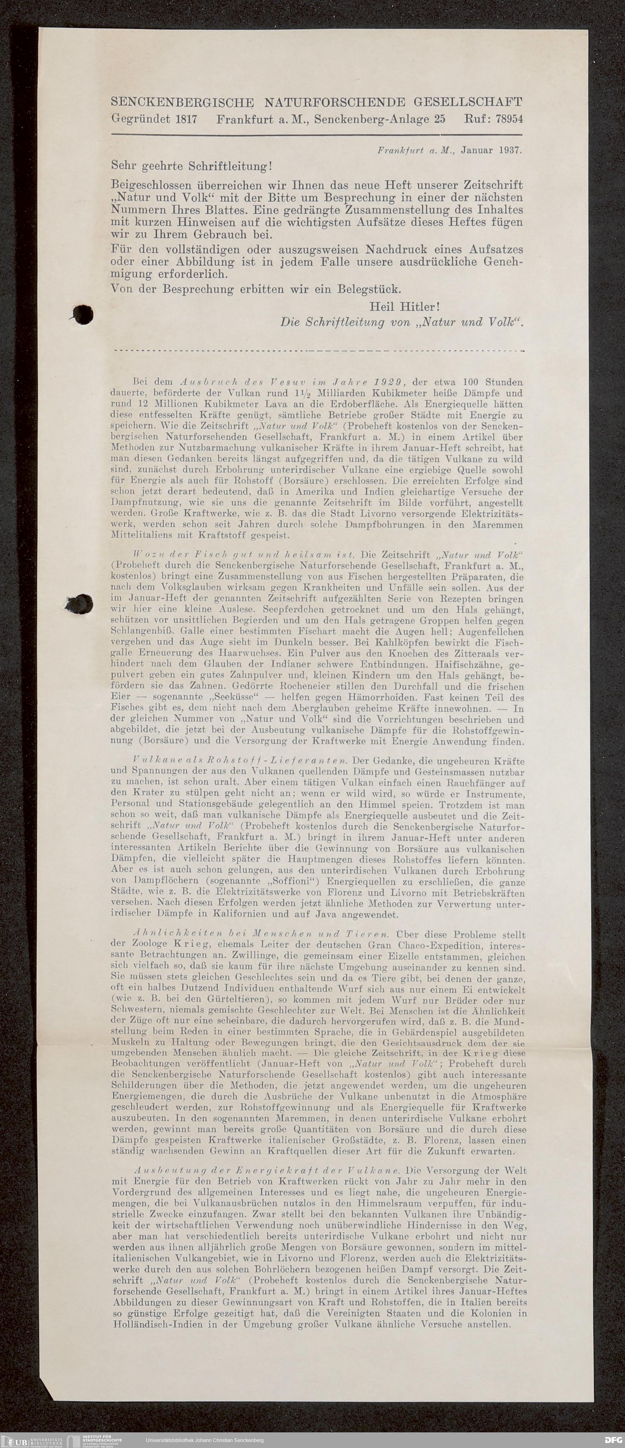 V176 Senckenberg Gesellschaft für Naturforschung, 647 - Rezensionen zu "Natur und Museum" bzw. "Natur und Volk"