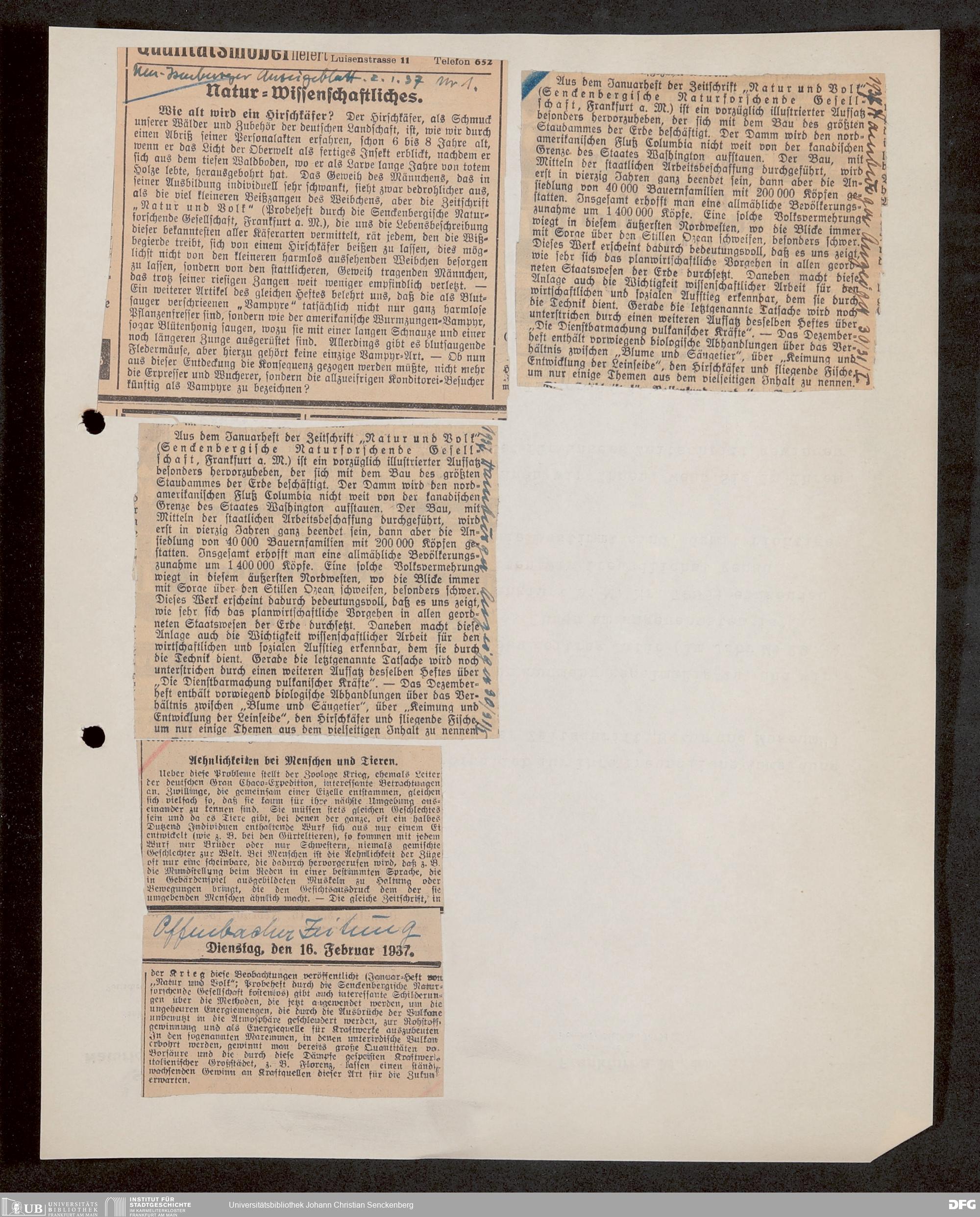 V176 Senckenberg Gesellschaft für Naturforschung, 647 - Rezensionen zu "Natur und Museum" bzw. "Natur und Volk"