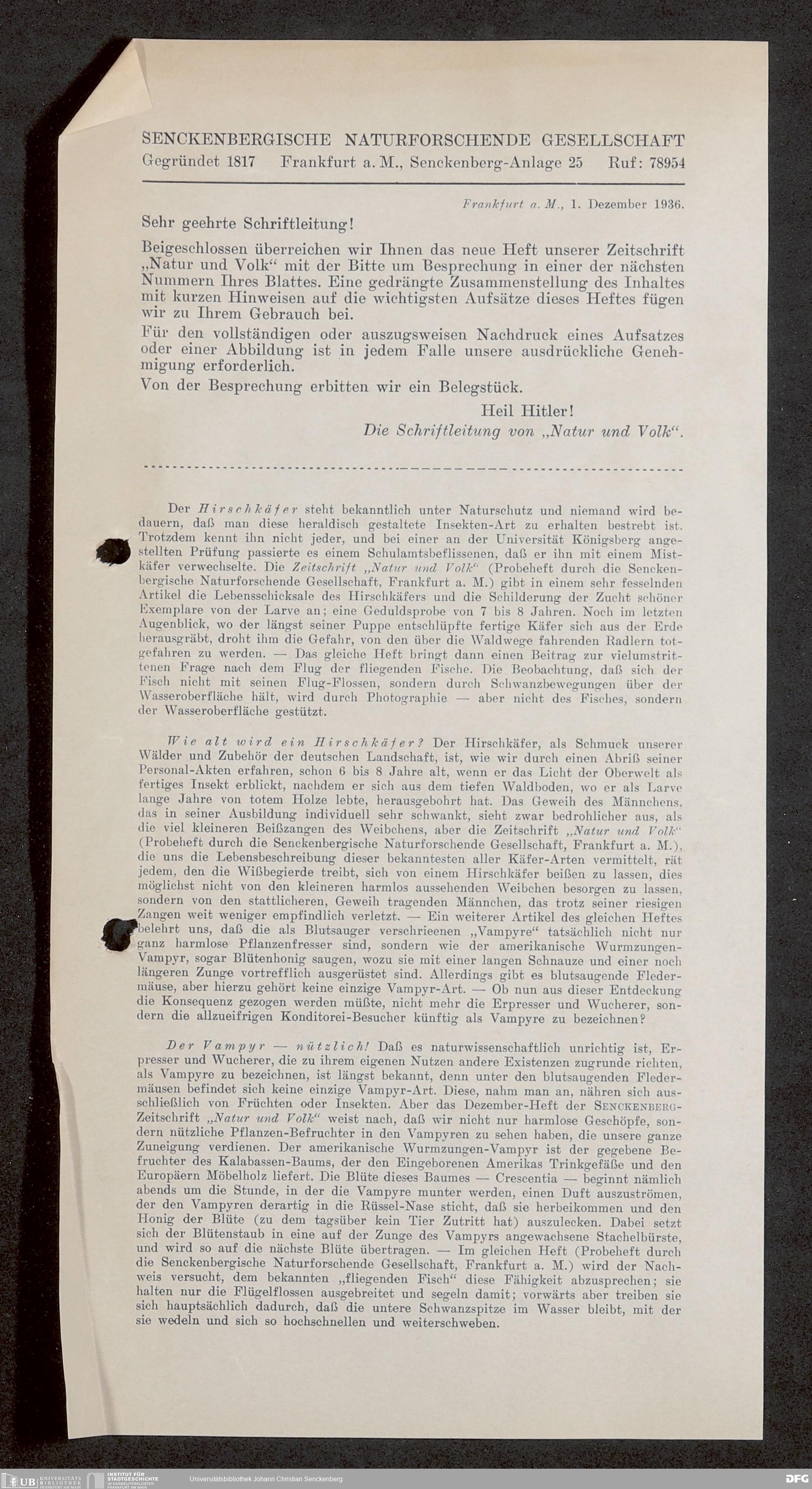 V176 Senckenberg Gesellschaft für Naturforschung, 647 - Rezensionen zu "Natur und Museum" bzw. "Natur und Volk"