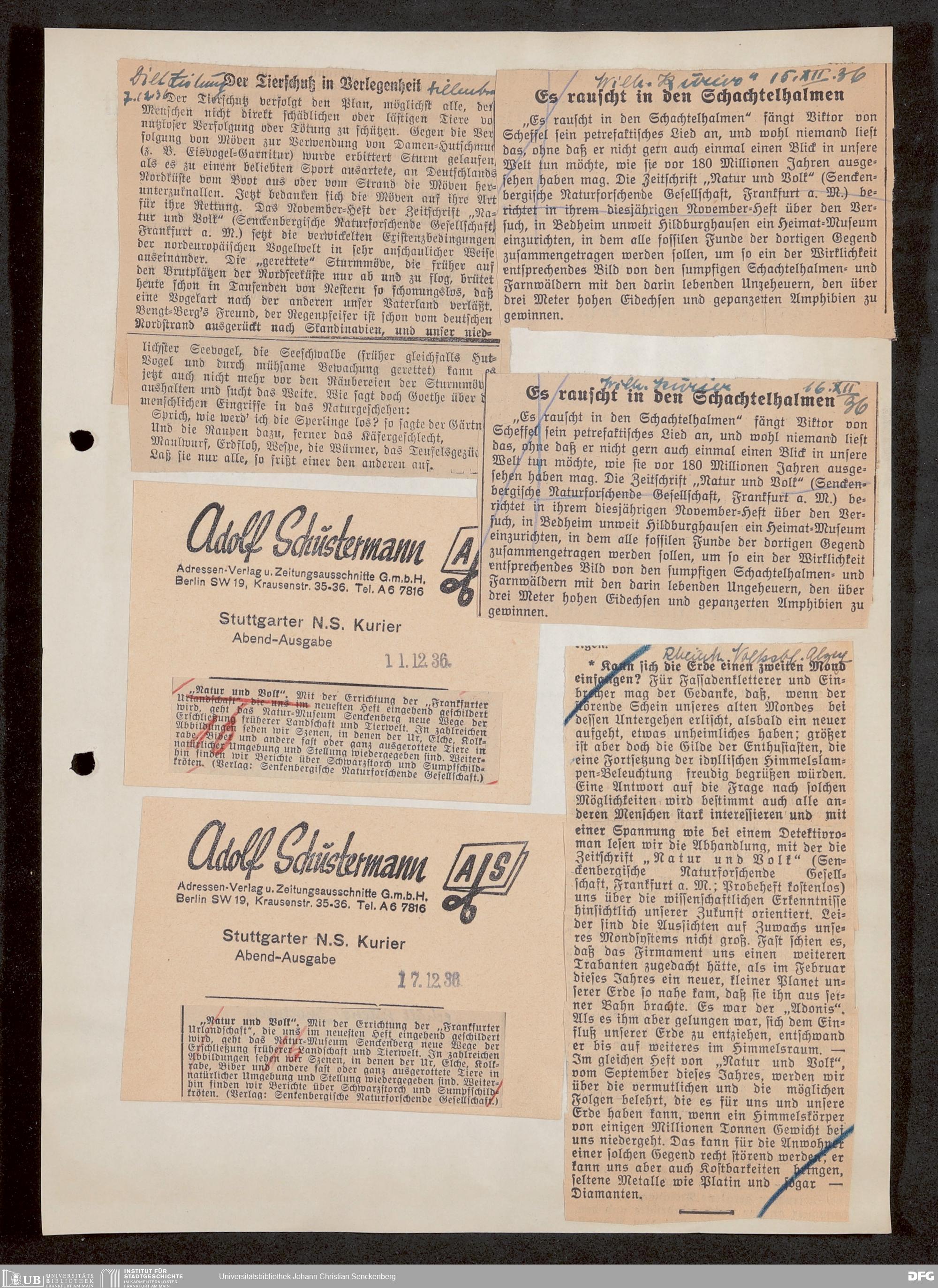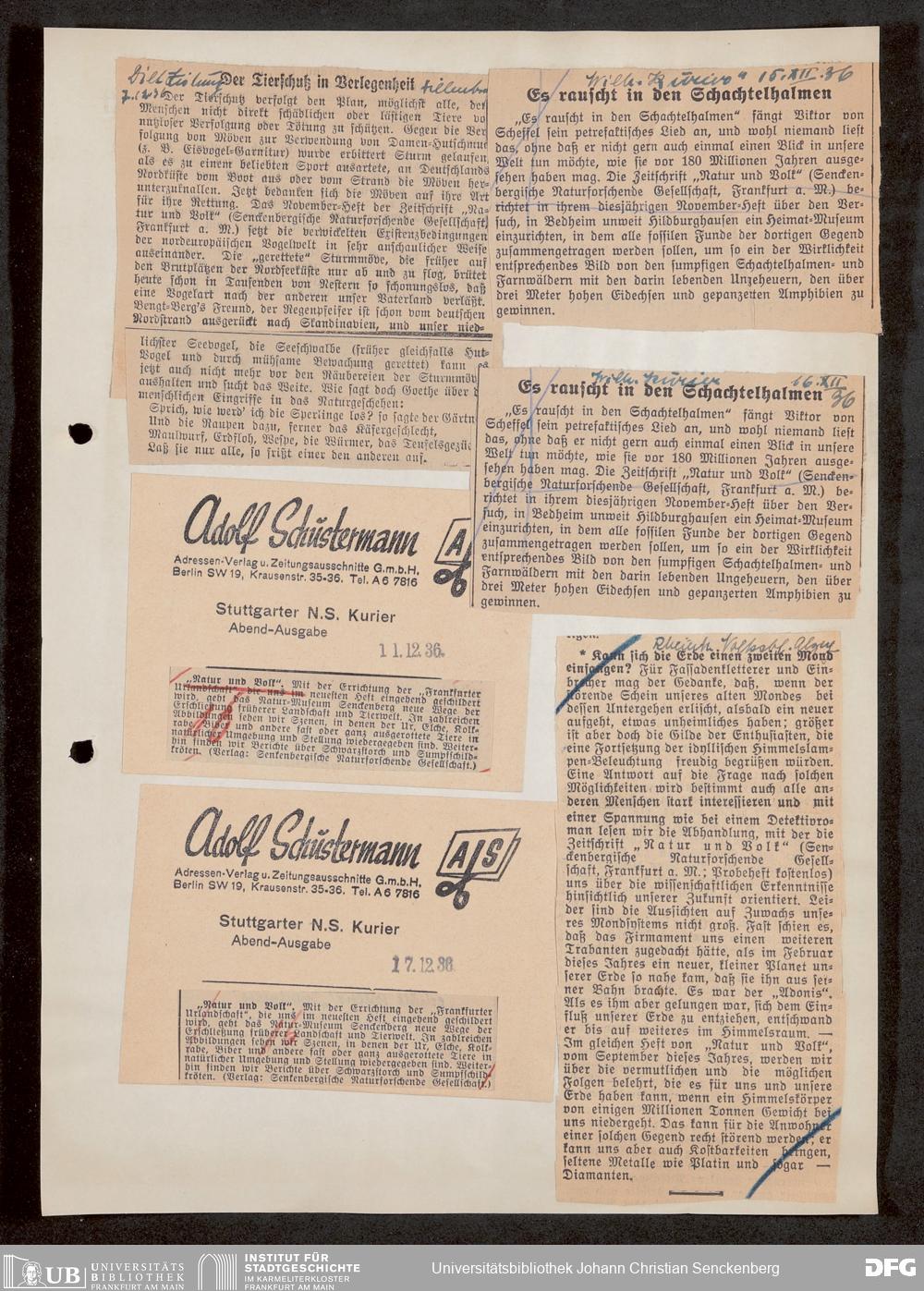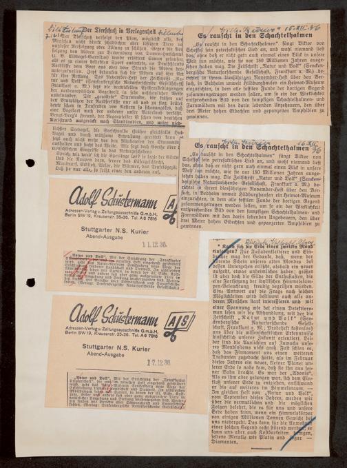 V176 Senckenberg Gesellschaft für Naturforschung, 647 - Rezensionen zu "Natur und Museum" bzw. "Natur und Volk"