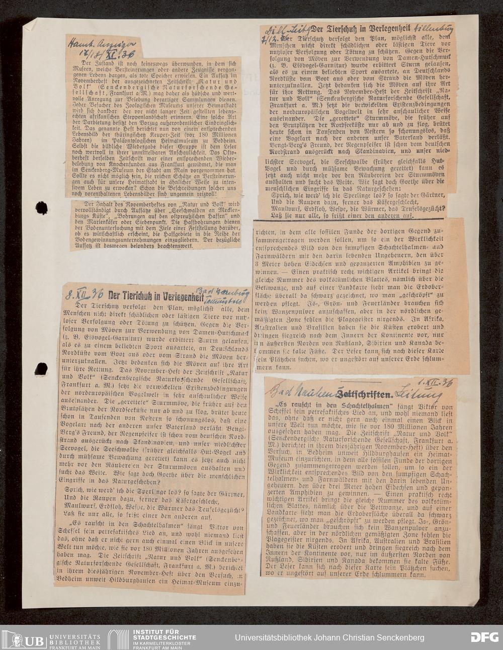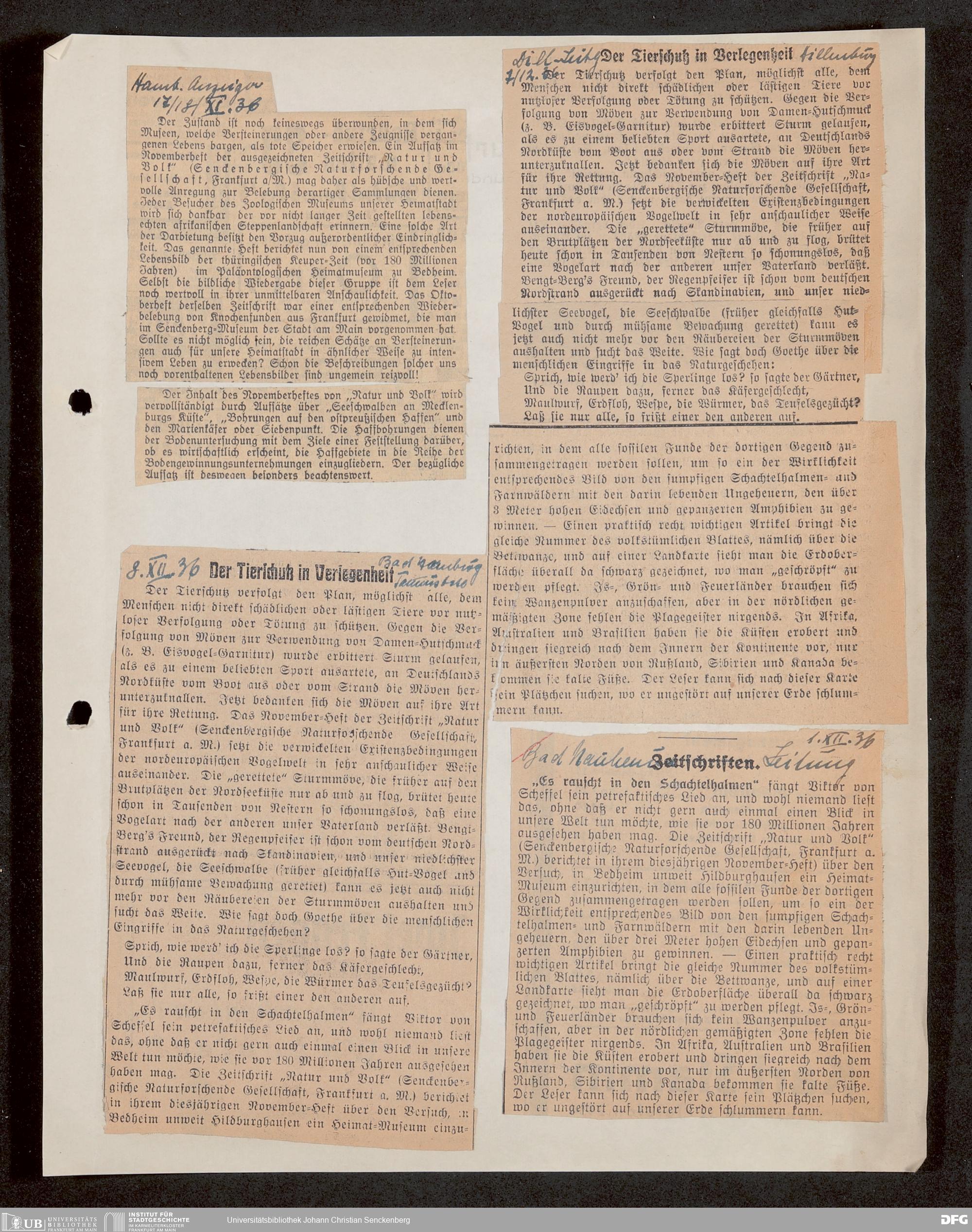 V176 Senckenberg Gesellschaft für Naturforschung, 647 - Rezensionen zu "Natur und Museum" bzw. "Natur und Volk"