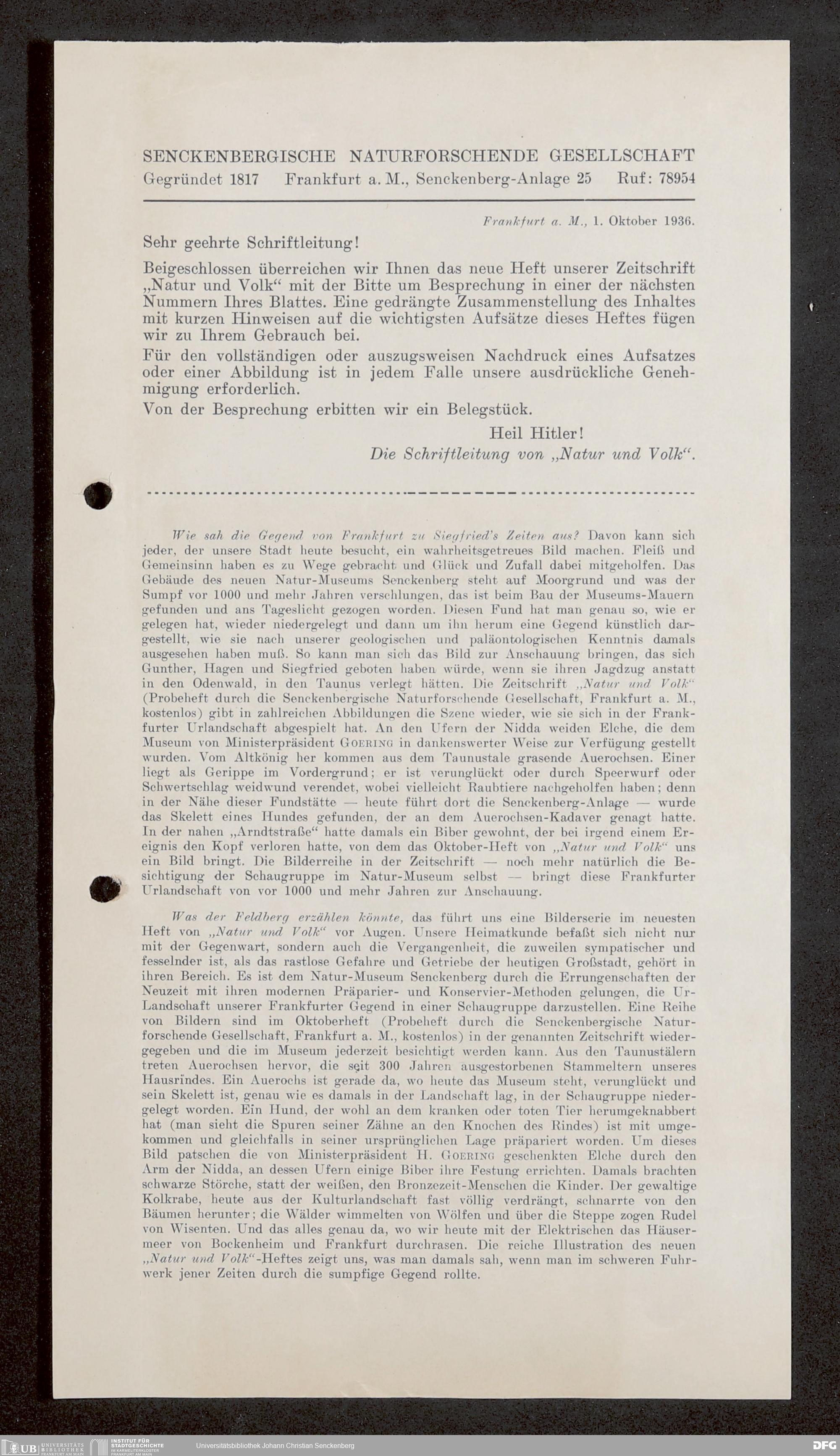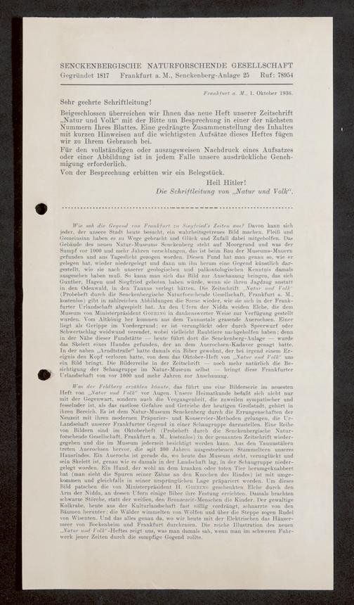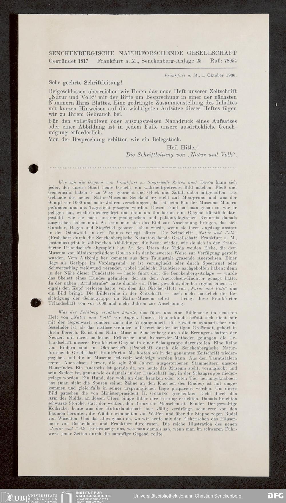 V176 Senckenberg Gesellschaft für Naturforschung, 647 - Rezensionen zu "Natur und Museum" bzw. "Natur und Volk"