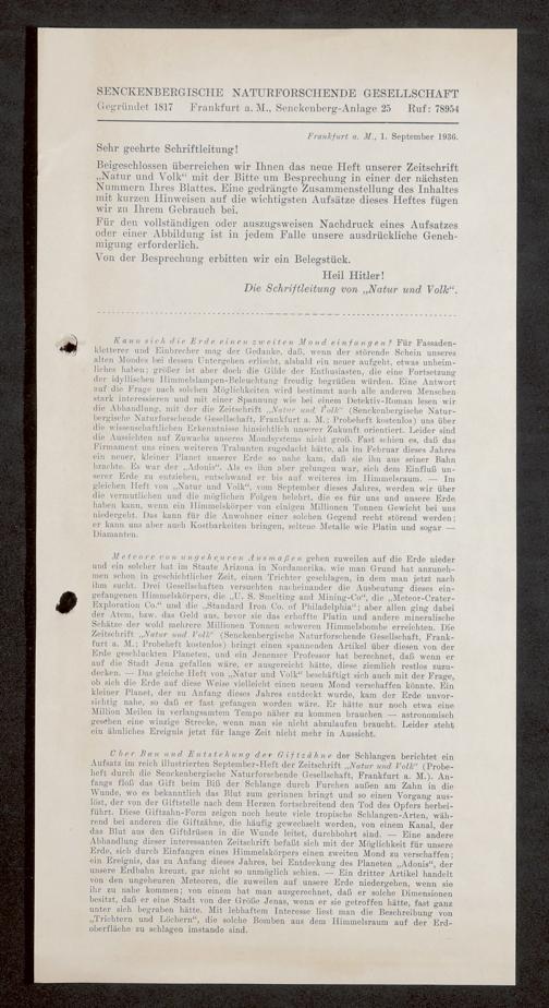V176 Senckenberg Gesellschaft für Naturforschung, 647 - Rezensionen zu "Natur und Museum" bzw. "Natur und Volk"