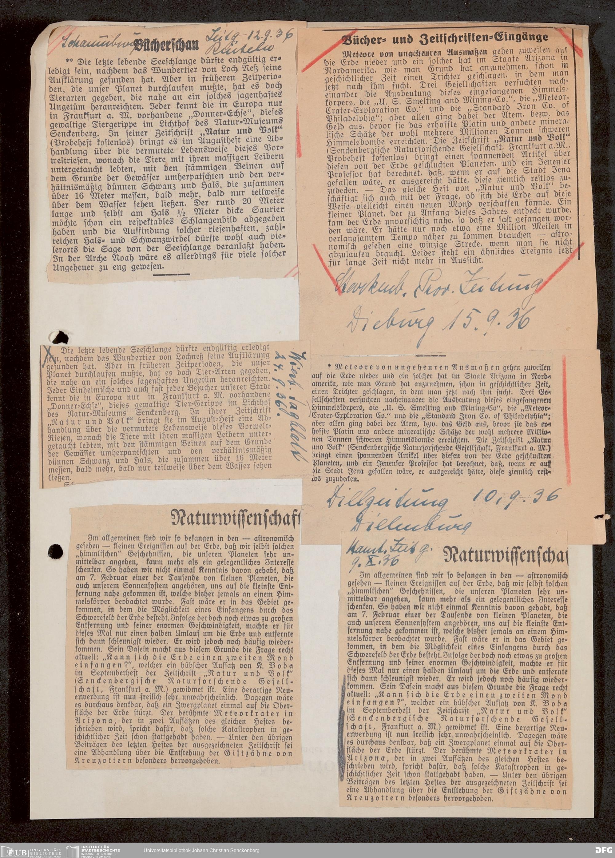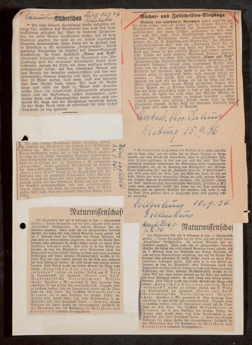 V176 Senckenberg Gesellschaft für Naturforschung, 647 - Rezensionen zu "Natur und Museum" bzw. "Natur und Volk"