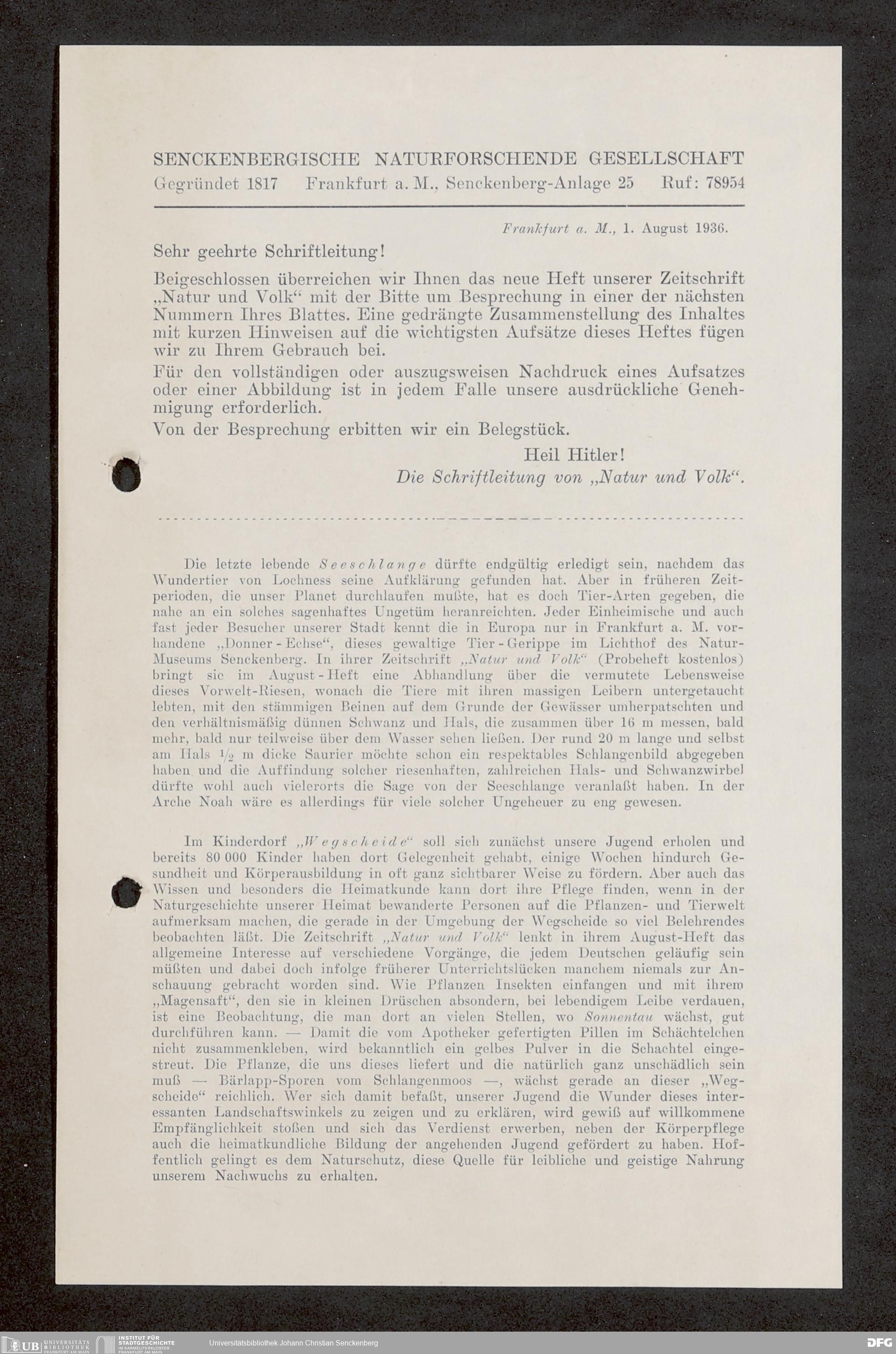 V176 Senckenberg Gesellschaft für Naturforschung, 647 - Rezensionen zu "Natur und Museum" bzw. "Natur und Volk"