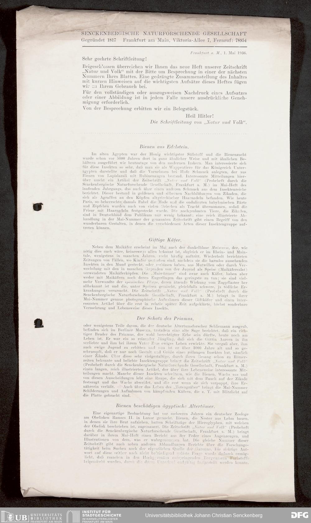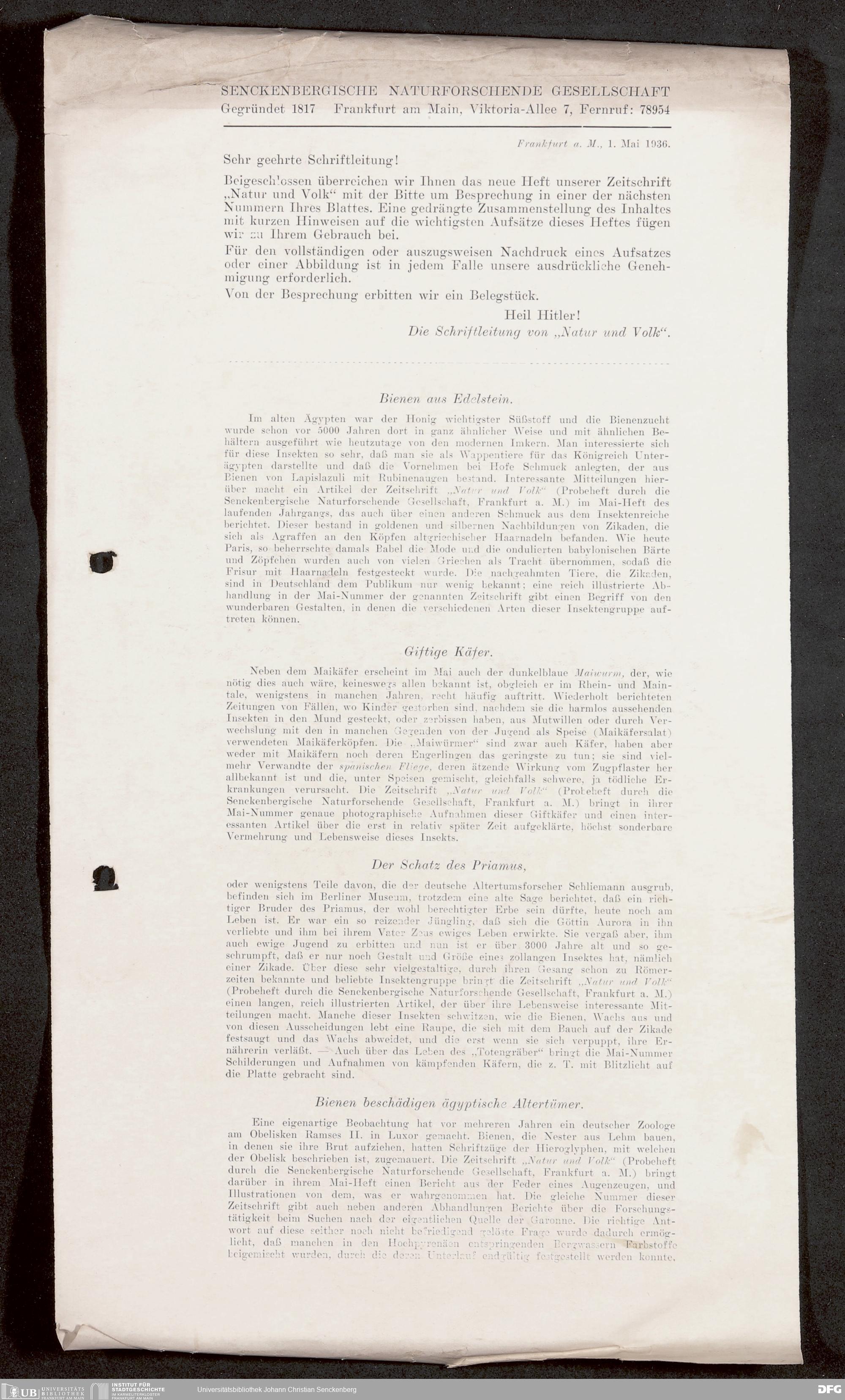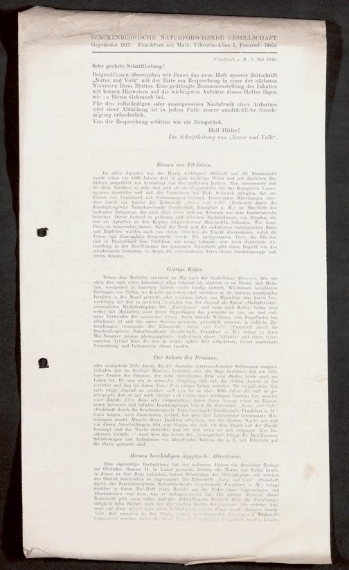V176 Senckenberg Gesellschaft für Naturforschung, 647 - Rezensionen zu "Natur und Museum" bzw. "Natur und Volk"