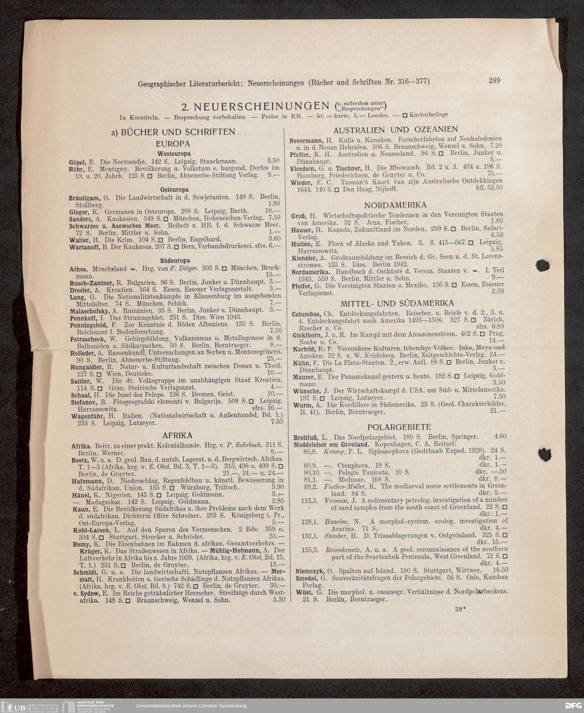 V176 Senckenberg Gesellschaft für Naturforschung, 647 - Rezensionen zu "Natur und Museum" bzw. "Natur und Volk"