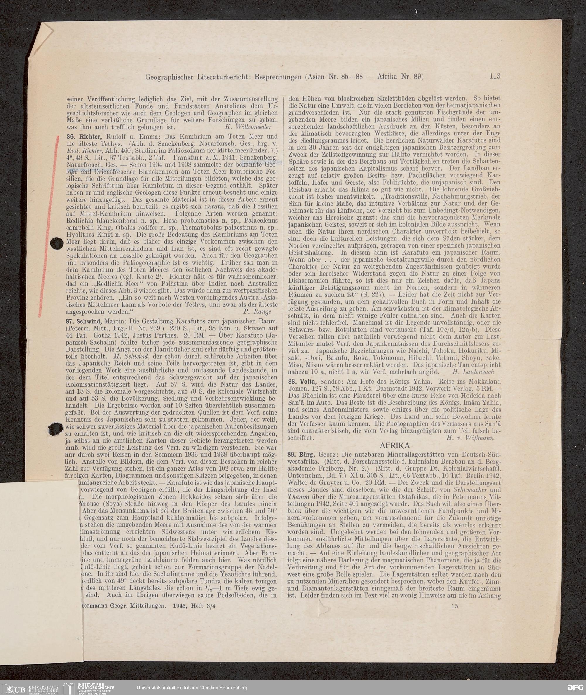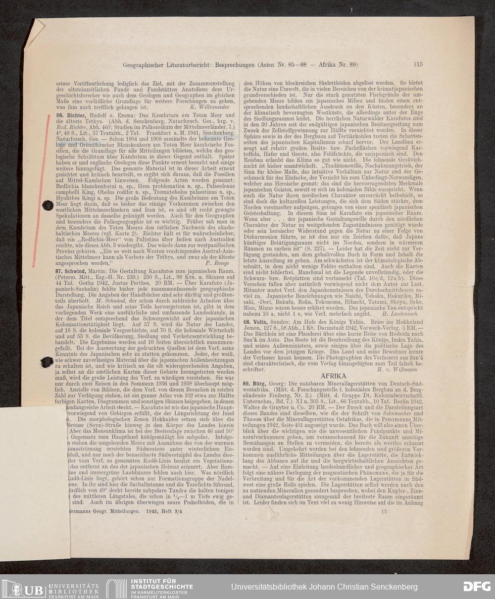 V176 Senckenberg Gesellschaft für Naturforschung, 647 - Rezensionen zu "Natur und Museum" bzw. "Natur und Volk"
