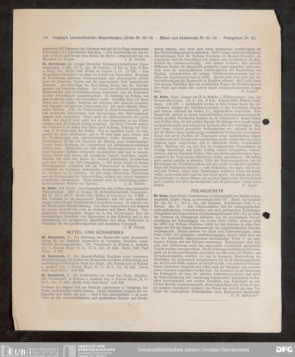 V176 Senckenberg Gesellschaft für Naturforschung, 647 - Rezensionen zu "Natur und Museum" bzw. "Natur und Volk"