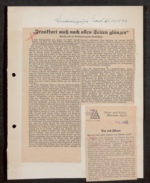 V176 Senckenberg Gesellschaft für Naturforschung, 647 - Rezensionen zu "Natur und Museum" bzw. "Natur und Volk"