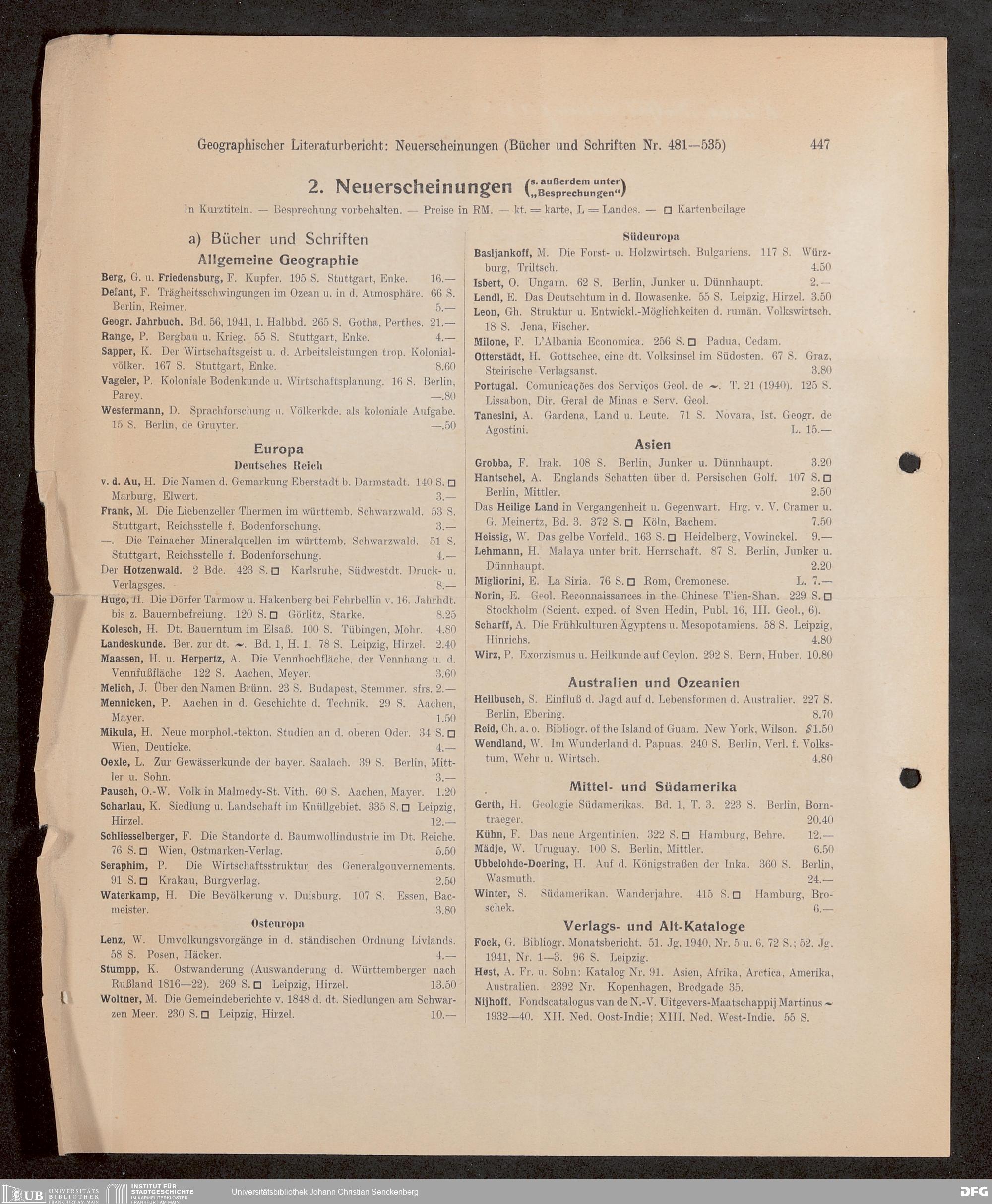 V176 Senckenberg Gesellschaft für Naturforschung, 647 - Rezensionen zu "Natur und Museum" bzw. "Natur und Volk"