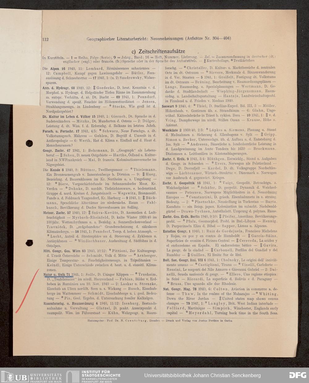 V176 Senckenberg Gesellschaft für Naturforschung, 647 - Rezensionen zu "Natur und Museum" bzw. "Natur und Volk"