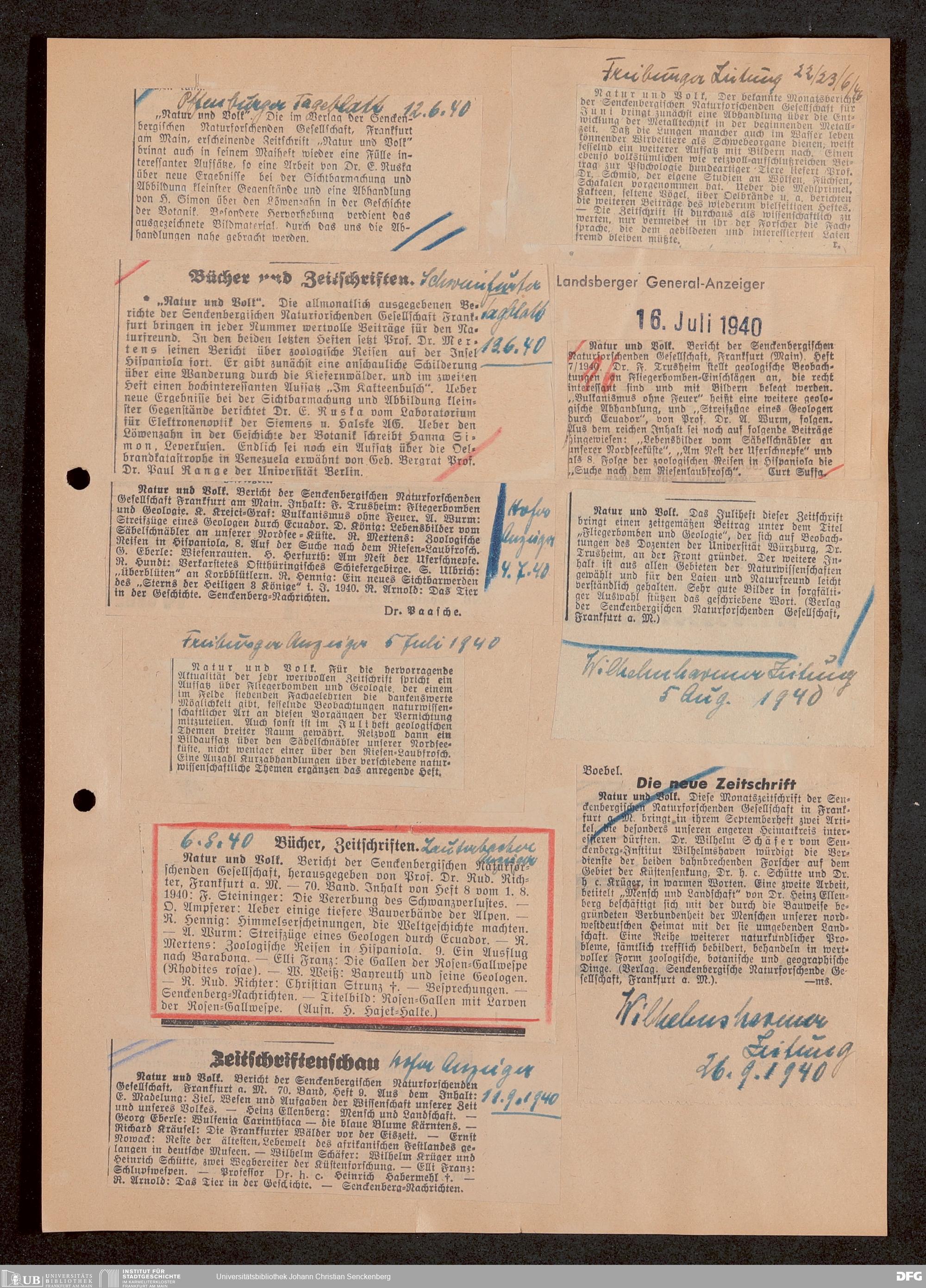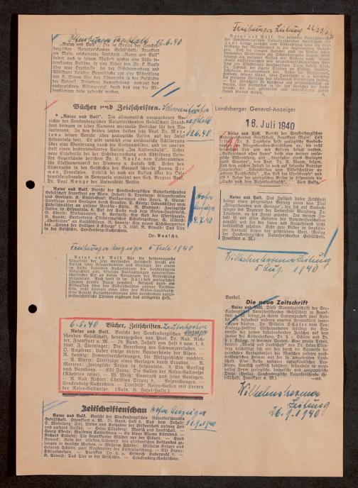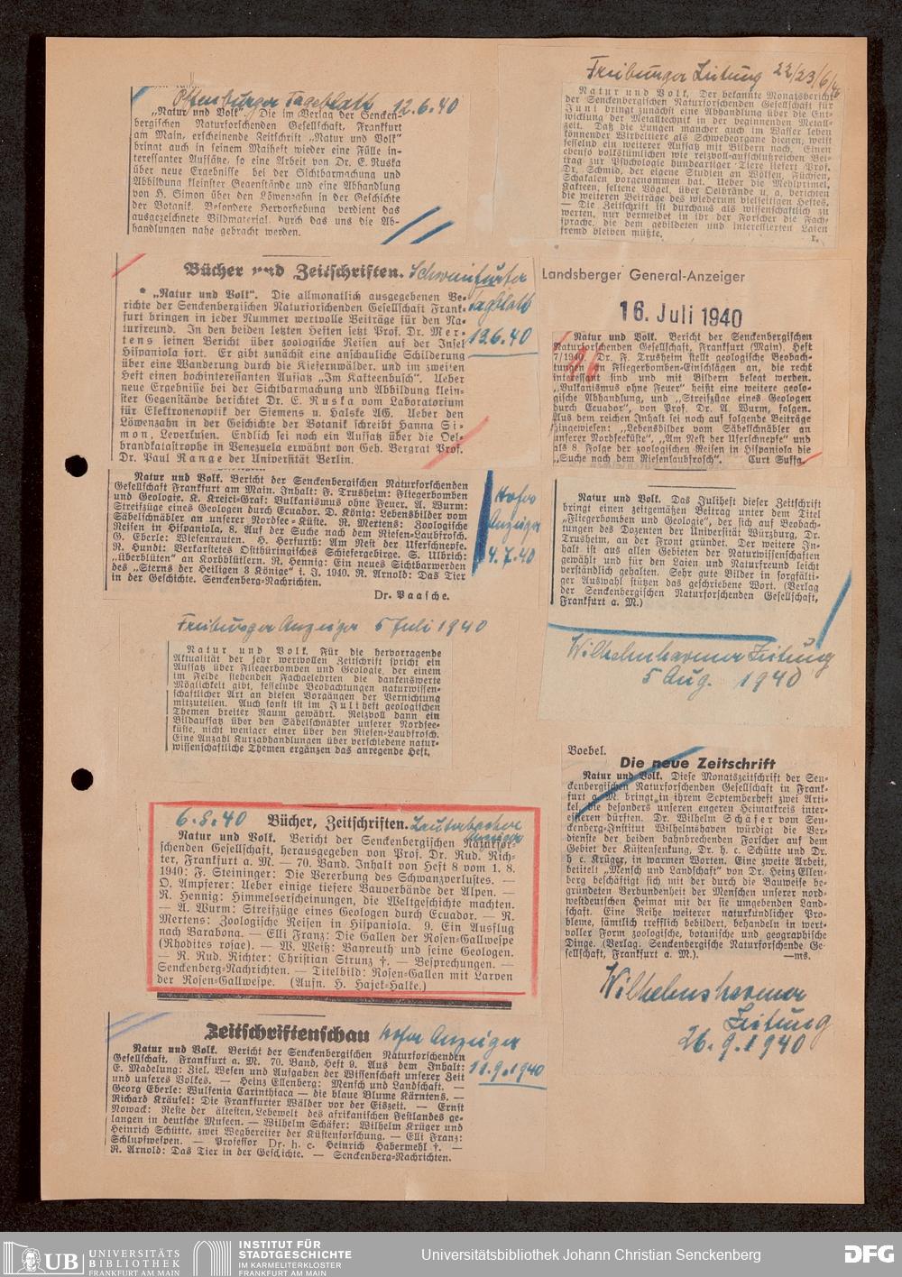 V176 Senckenberg Gesellschaft für Naturforschung, 647 - Rezensionen zu "Natur und Museum" bzw. "Natur und Volk"