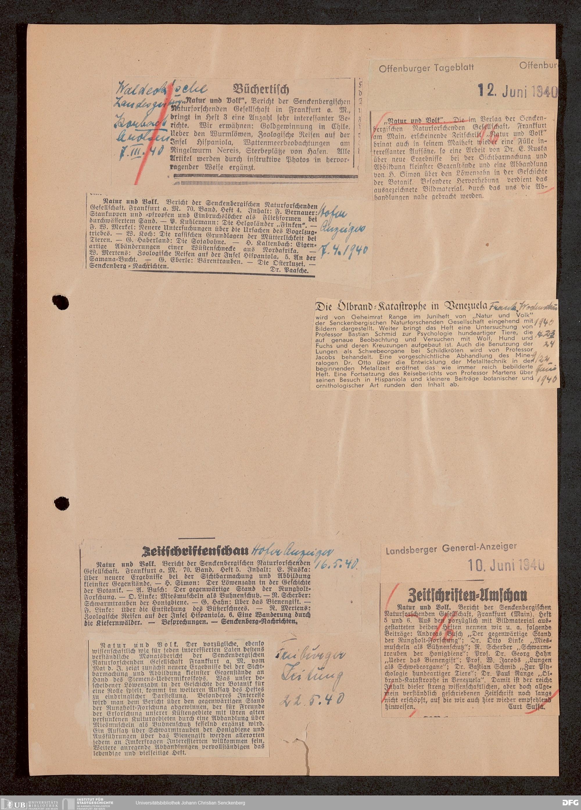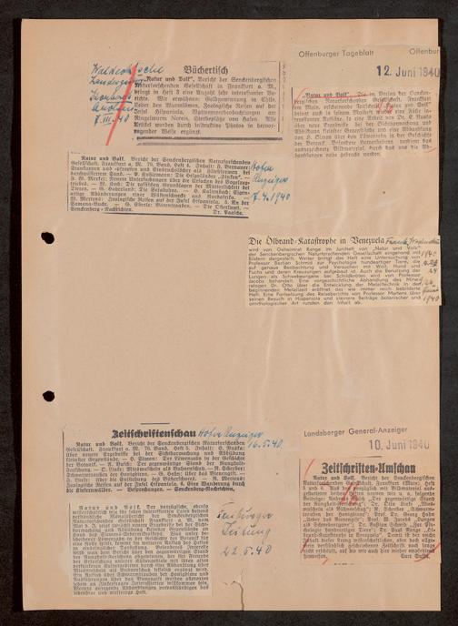 V176 Senckenberg Gesellschaft für Naturforschung, 647 - Rezensionen zu "Natur und Museum" bzw. "Natur und Volk"