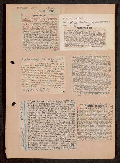 V176 Senckenberg Gesellschaft für Naturforschung, 647 - Rezensionen zu "Natur und Museum" bzw. "Natur und Volk"