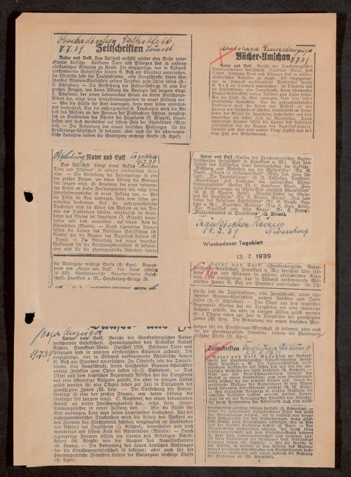 V176 Senckenberg Gesellschaft für Naturforschung, 647 - Rezensionen zu "Natur und Museum" bzw. "Natur und Volk"