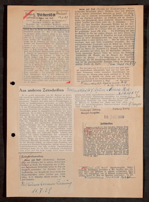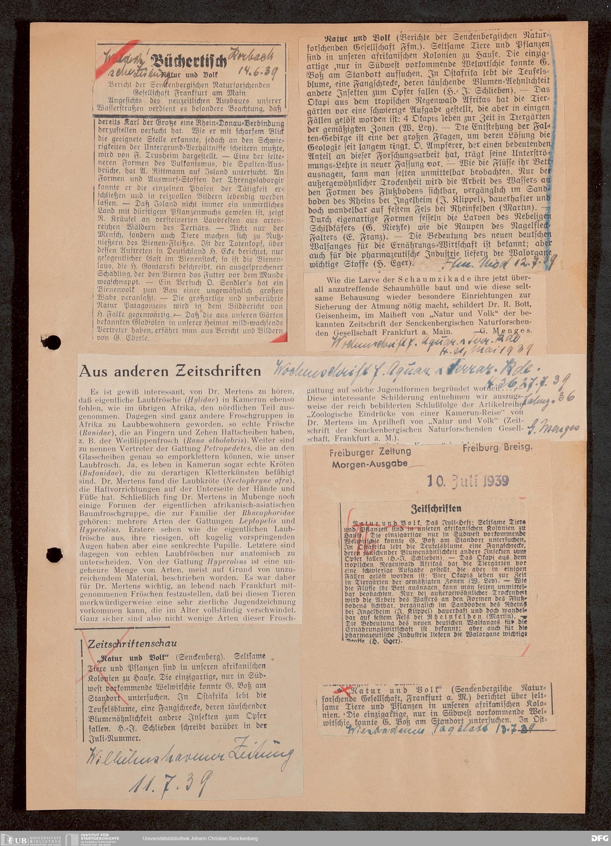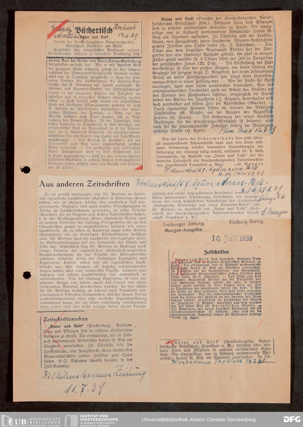 V176 Senckenberg Gesellschaft für Naturforschung, 647 - Rezensionen zu "Natur und Museum" bzw. "Natur und Volk"