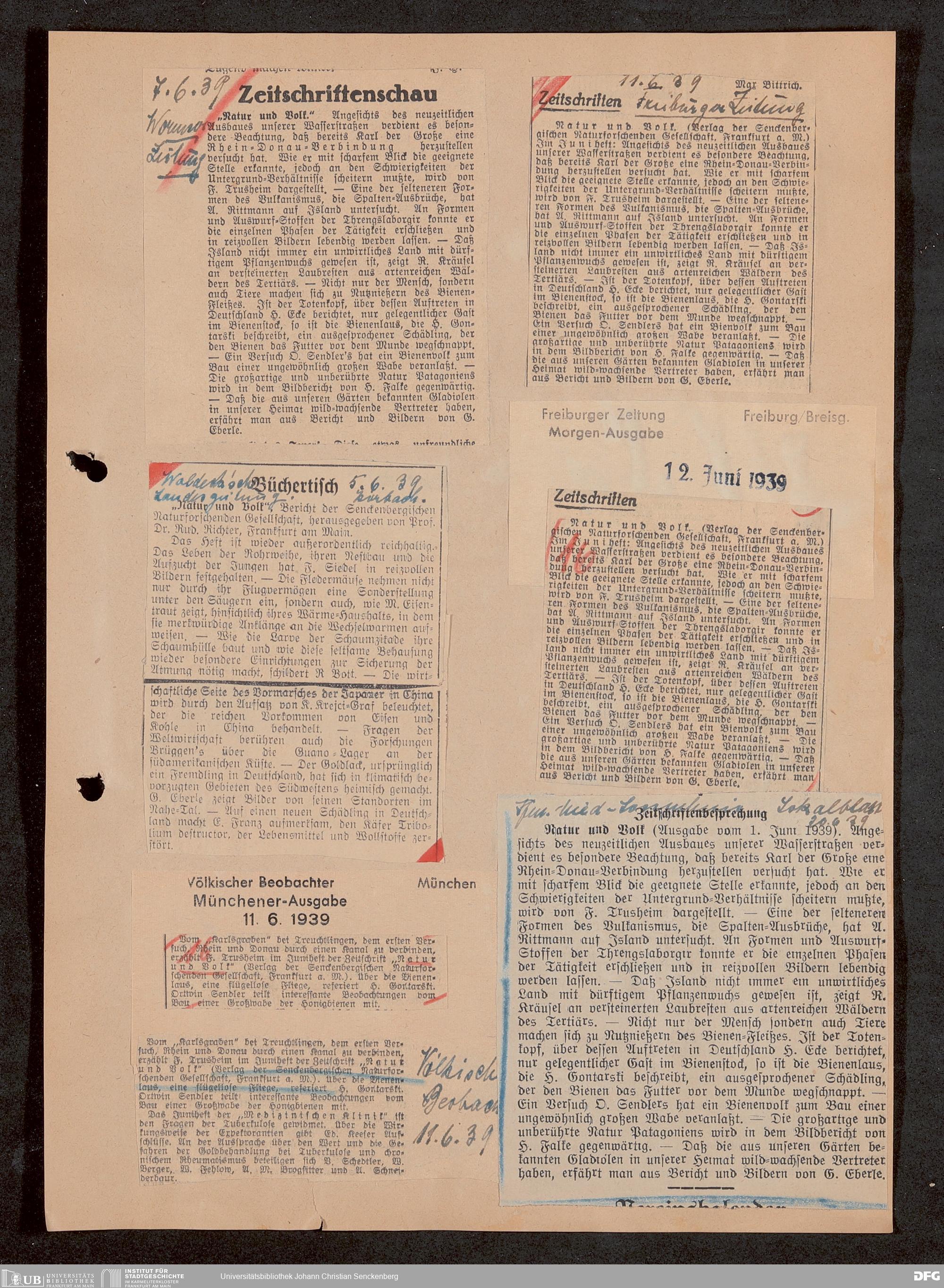 V176 Senckenberg Gesellschaft für Naturforschung, 647 - Rezensionen zu "Natur und Museum" bzw. "Natur und Volk"