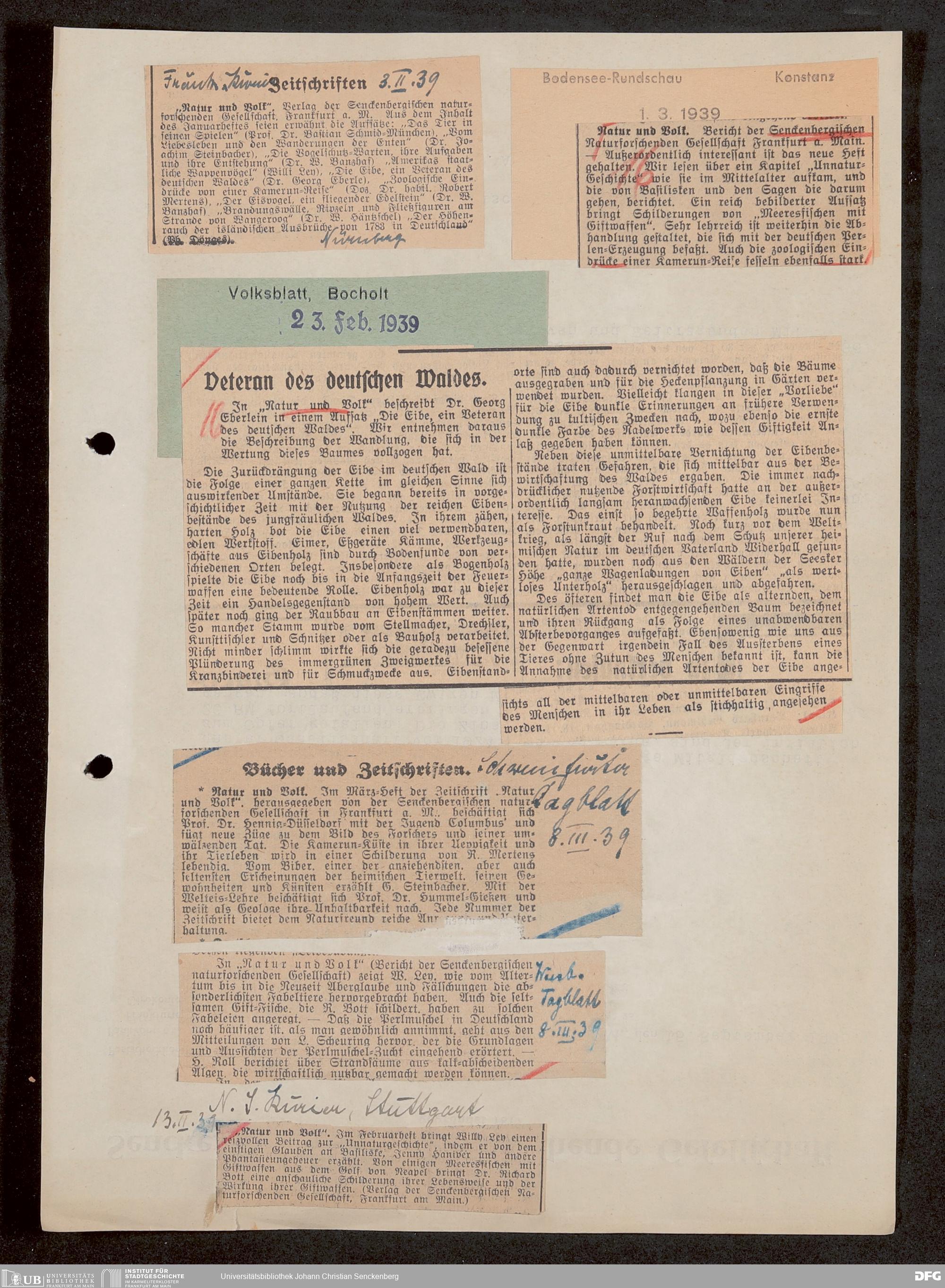 V176 Senckenberg Gesellschaft für Naturforschung, 647 - Rezensionen zu "Natur und Museum" bzw. "Natur und Volk"