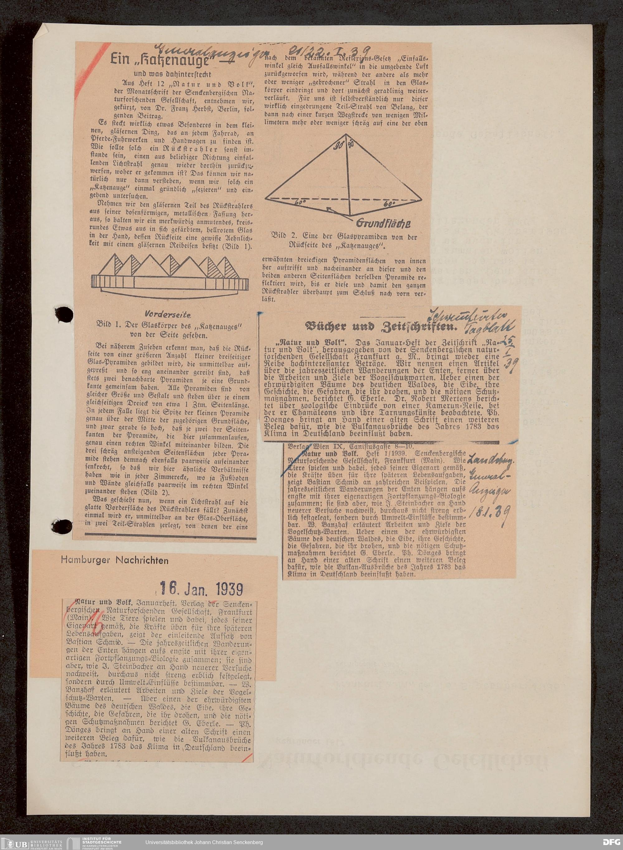 V176 Senckenberg Gesellschaft für Naturforschung, 647 - Rezensionen zu "Natur und Museum" bzw. "Natur und Volk"