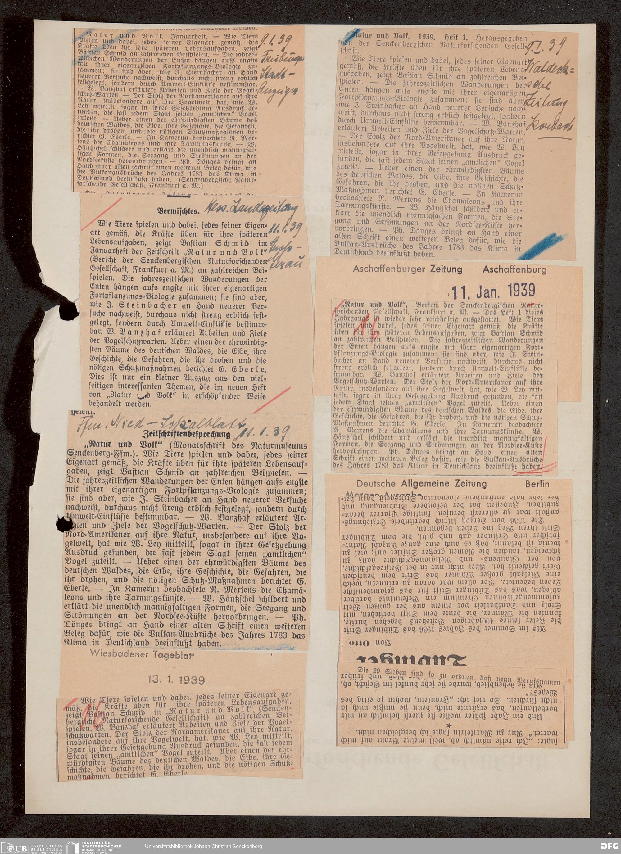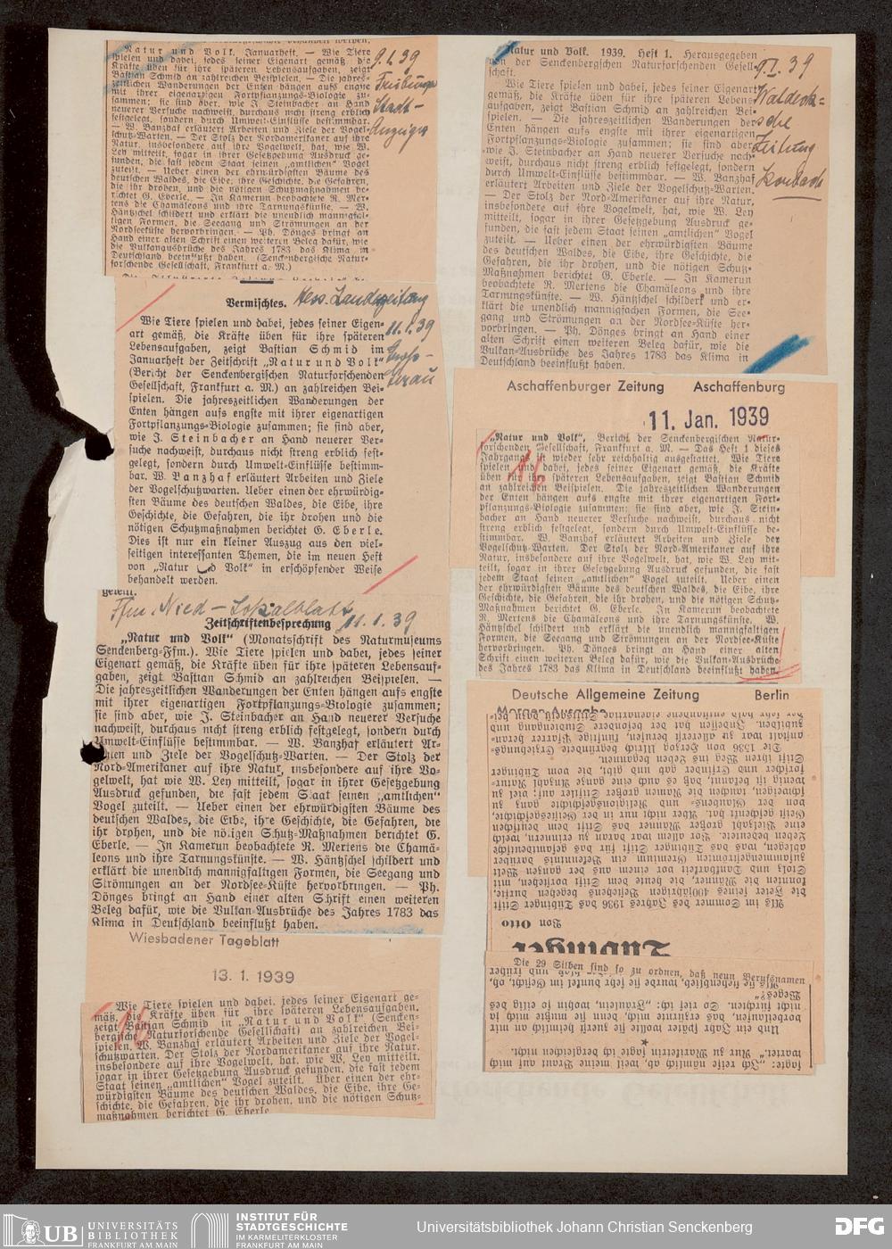 V176 Senckenberg Gesellschaft für Naturforschung, 647 - Rezensionen zu "Natur und Museum" bzw. "Natur und Volk"