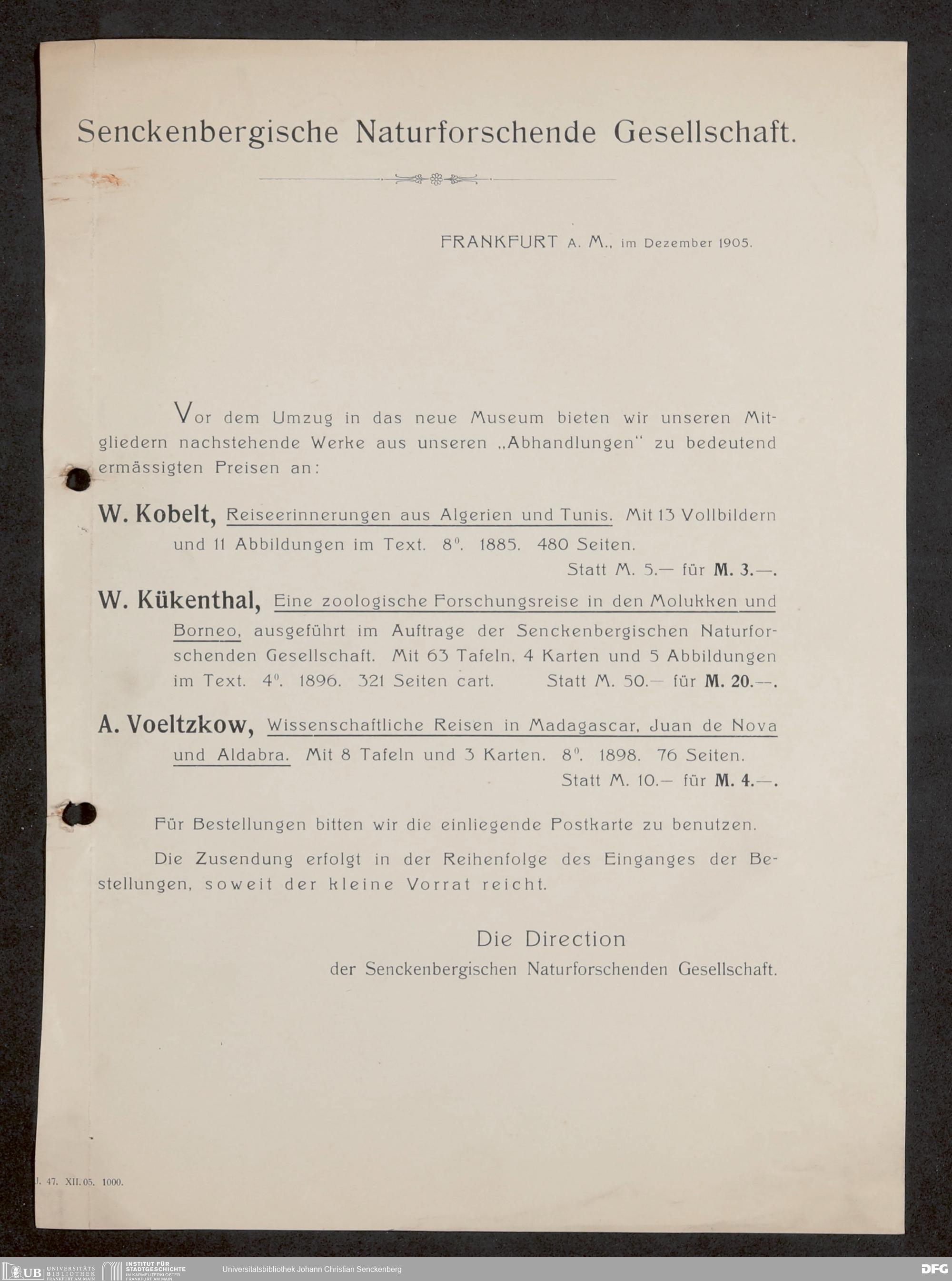 V176 Senckenberg Gesellschaft für Naturforschung, 648 - Herausgabe der "Abhandlungen der Senckenbergischen Naturforschenden Gesellschaft", Bd. 6