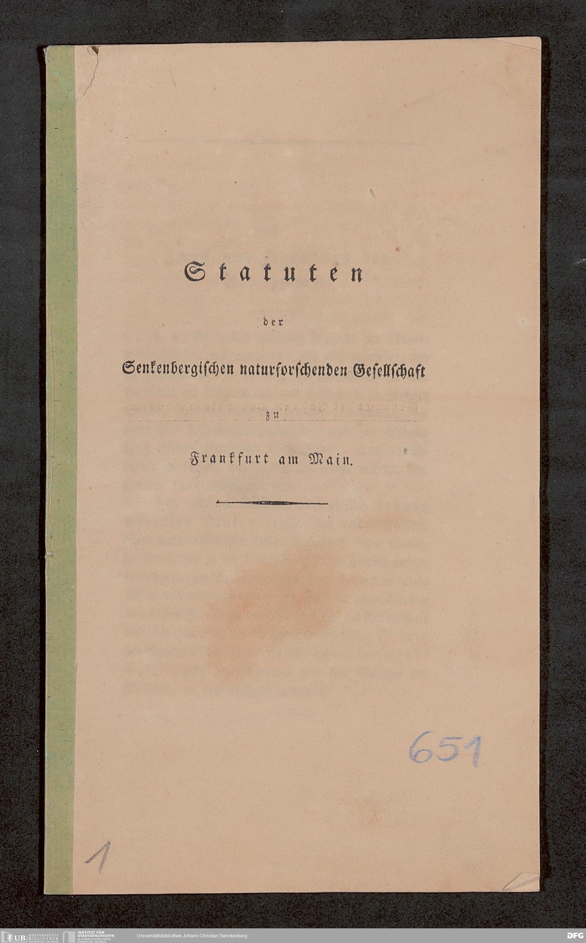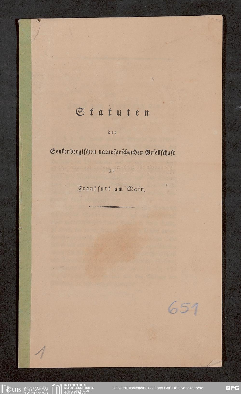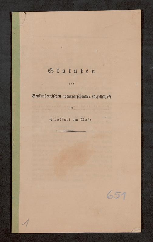 V176 Senckenberg Gesellschaft für Naturforschung, 651 - Statuten der Senckenbergischen naturforschenden Gesellschaft zu Frankfurt am Main in der revidierten Fassung vom August 1821
