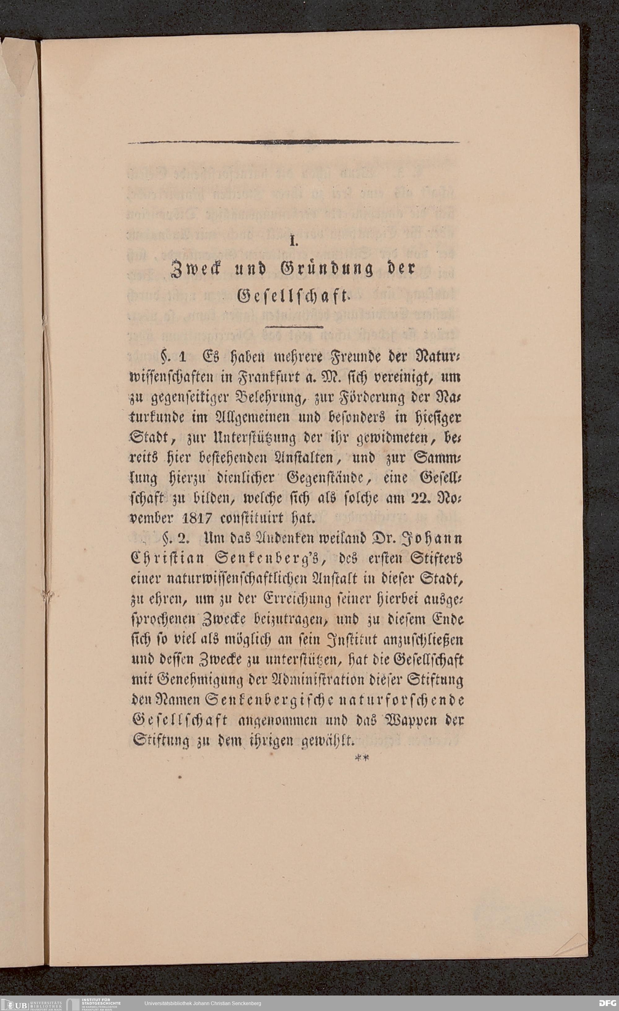 V176 Senckenberg Gesellschaft für Naturforschung, 651 - Statuten der Senckenbergischen naturforschenden Gesellschaft zu Frankfurt am Main in der revidierten Fassung vom August 1821