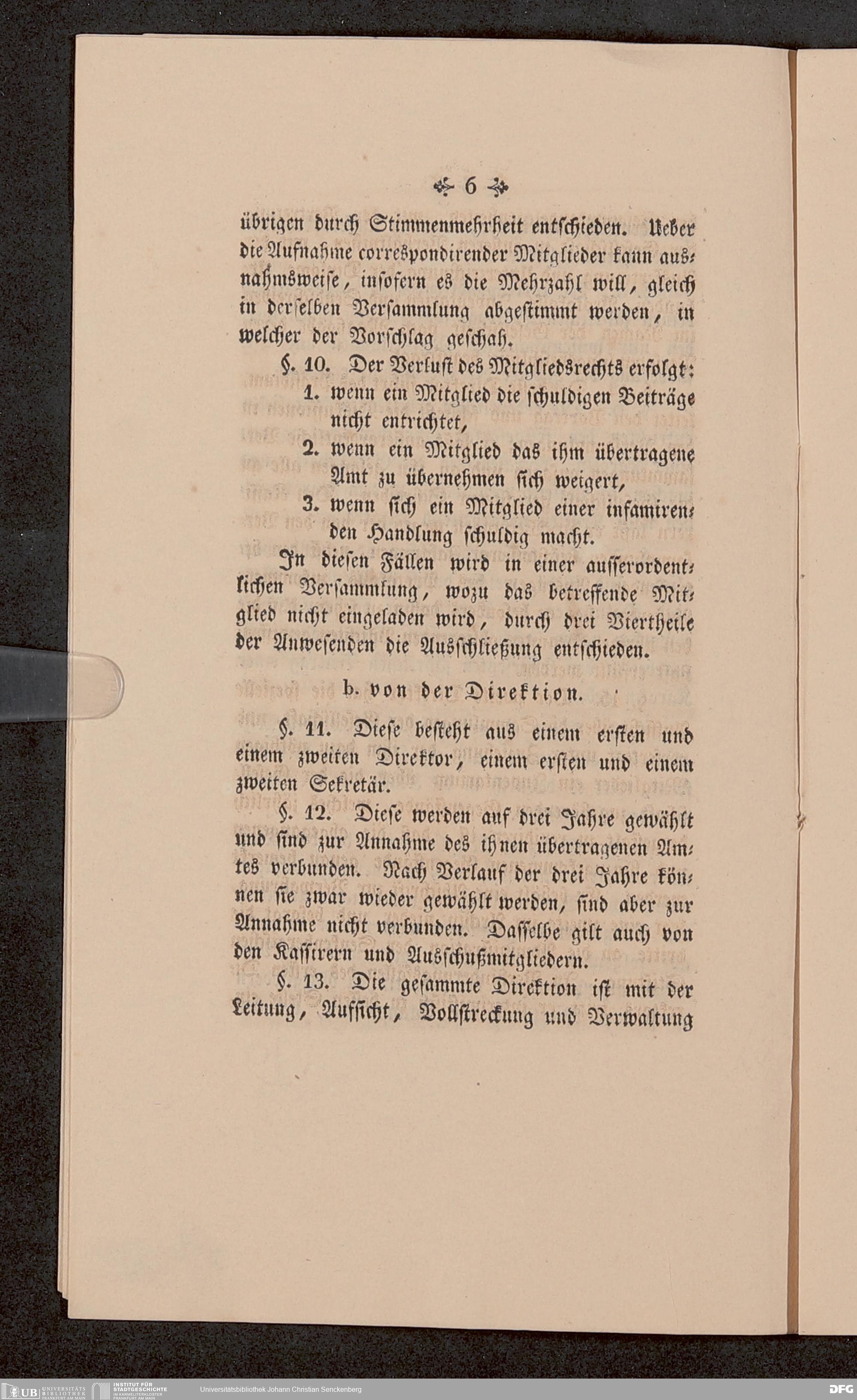 V176 Senckenberg Gesellschaft für Naturforschung, 651 - Statuten der Senckenbergischen naturforschenden Gesellschaft zu Frankfurt am Main in der revidierten Fassung vom August 1821