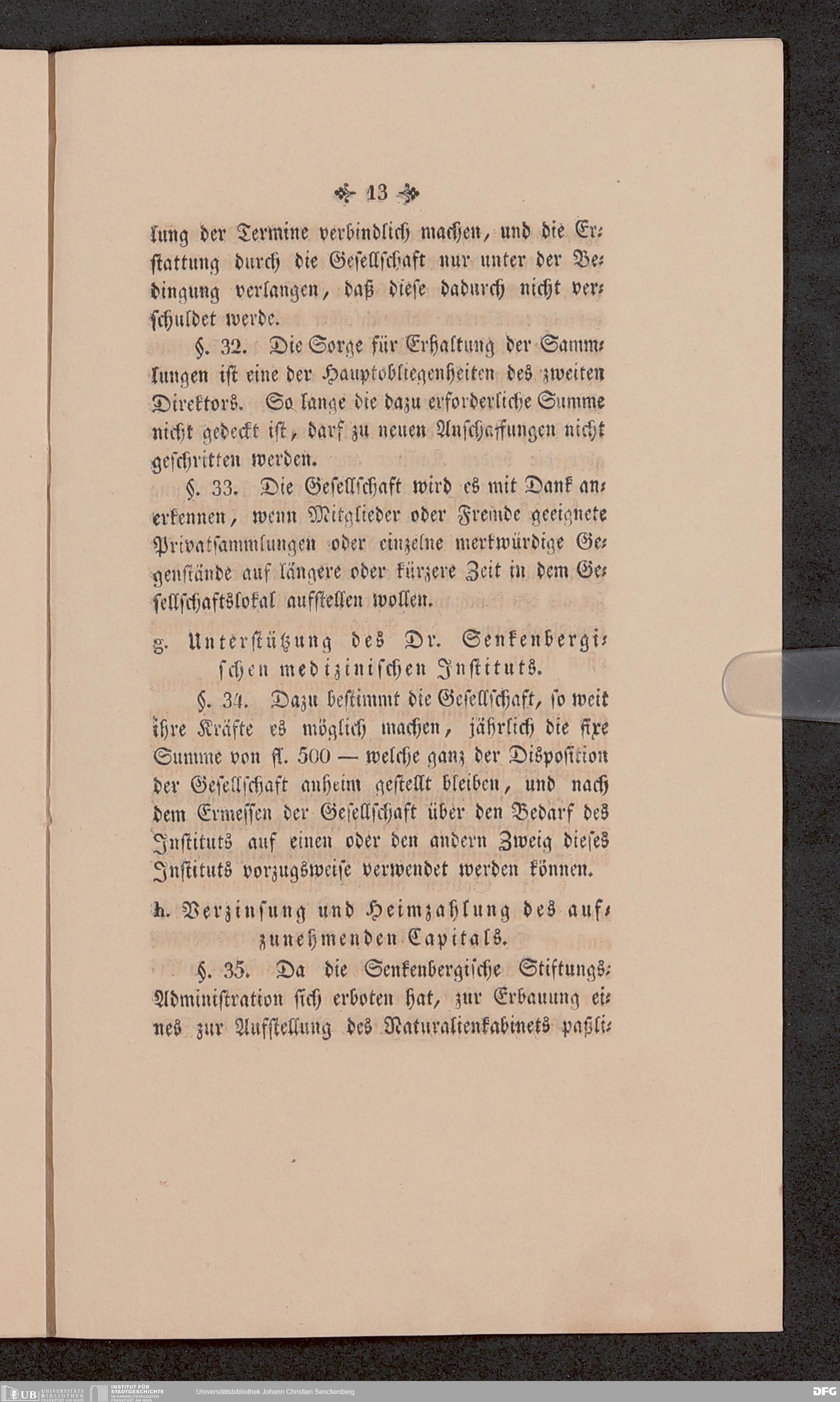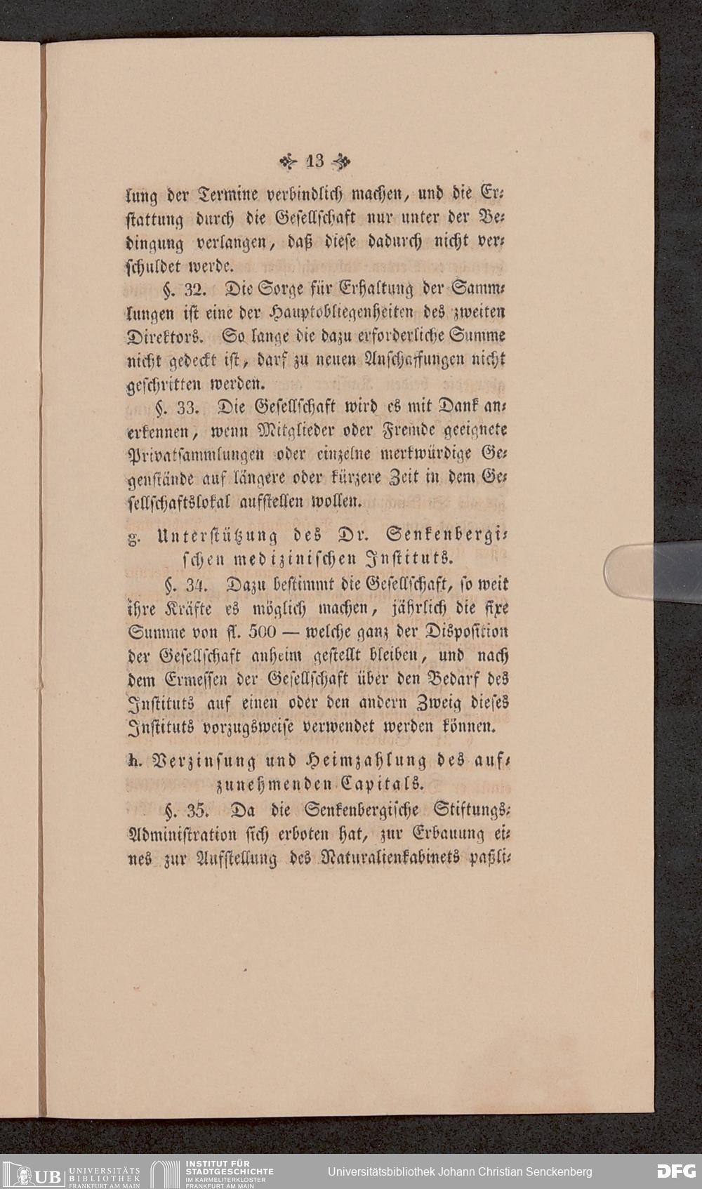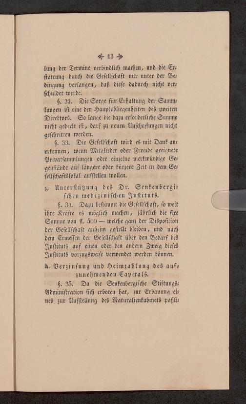 V176 Senckenberg Gesellschaft für Naturforschung, 651 - Statuten der Senckenbergischen naturforschenden Gesellschaft zu Frankfurt am Main in der revidierten Fassung vom August 1821