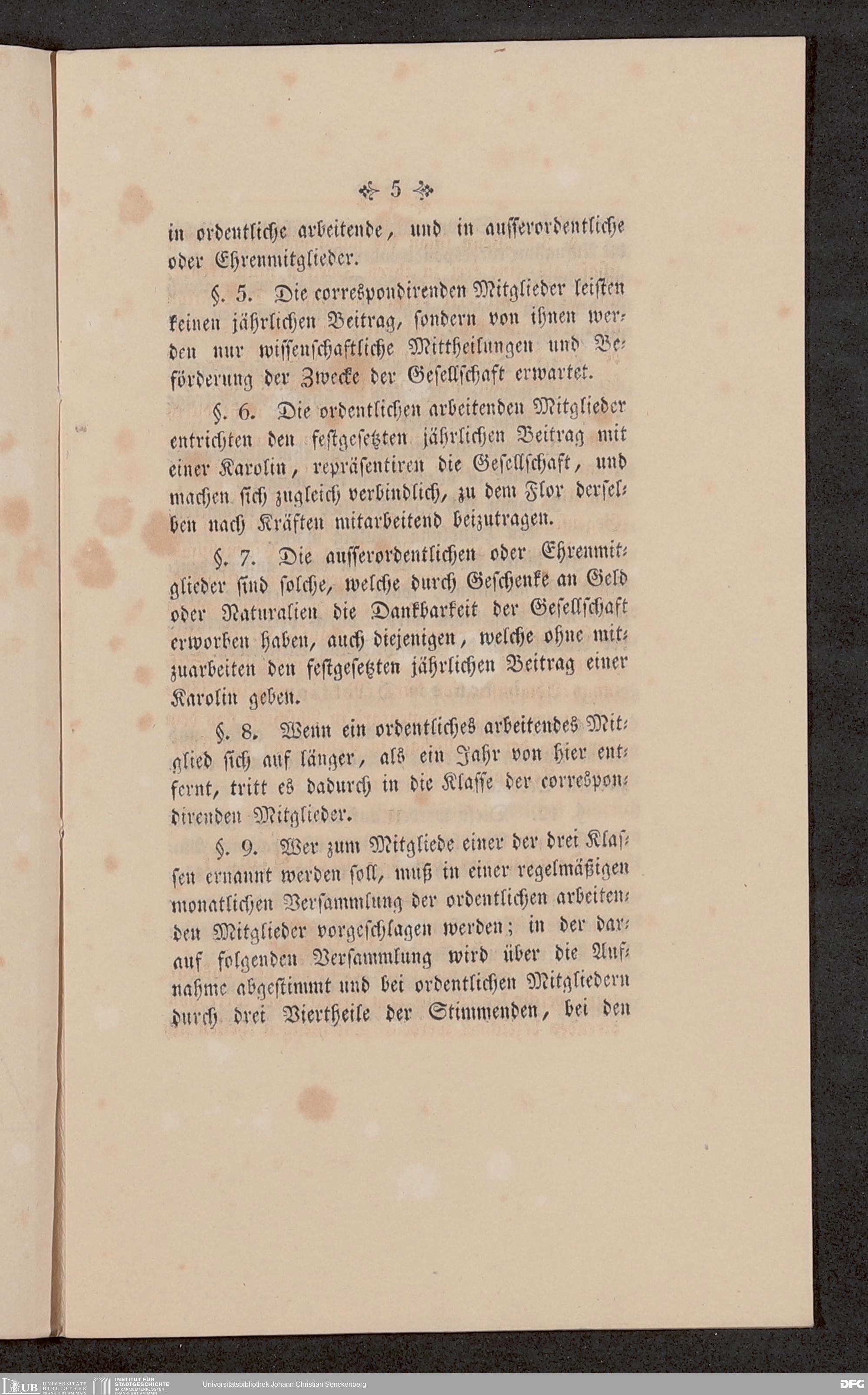 V176 Senckenberg Gesellschaft für Naturforschung, 651 - Statuten der Senckenbergischen naturforschenden Gesellschaft zu Frankfurt am Main in der revidierten Fassung vom August 1821