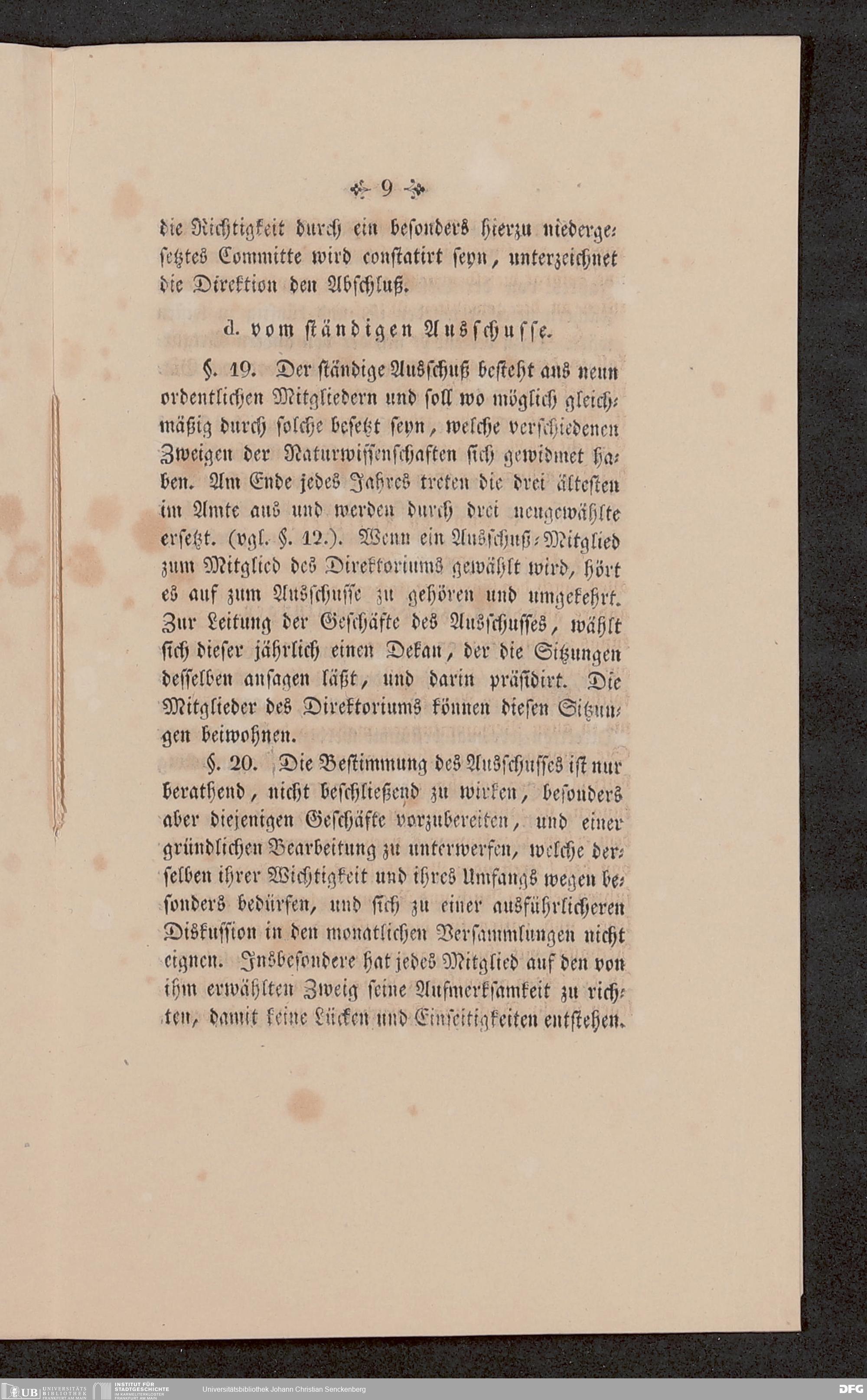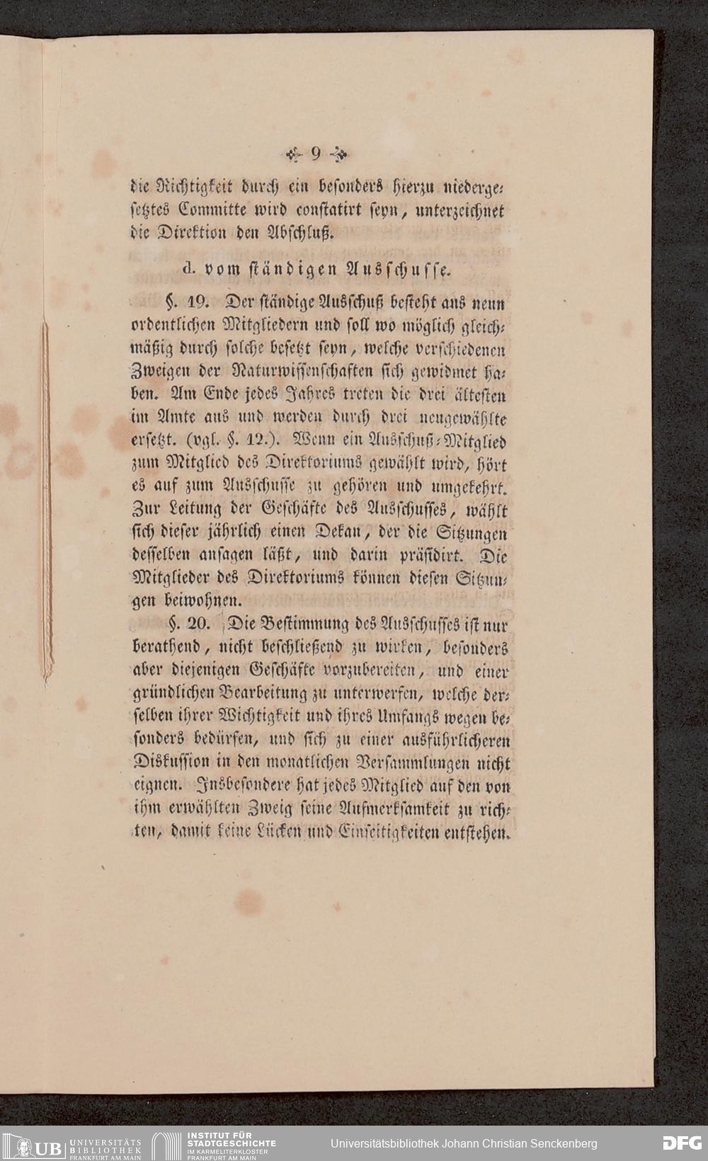 V176 Senckenberg Gesellschaft für Naturforschung, 651 - Statuten der Senckenbergischen naturforschenden Gesellschaft zu Frankfurt am Main in der revidierten Fassung vom August 1821