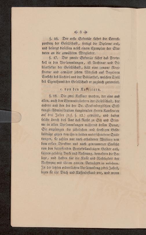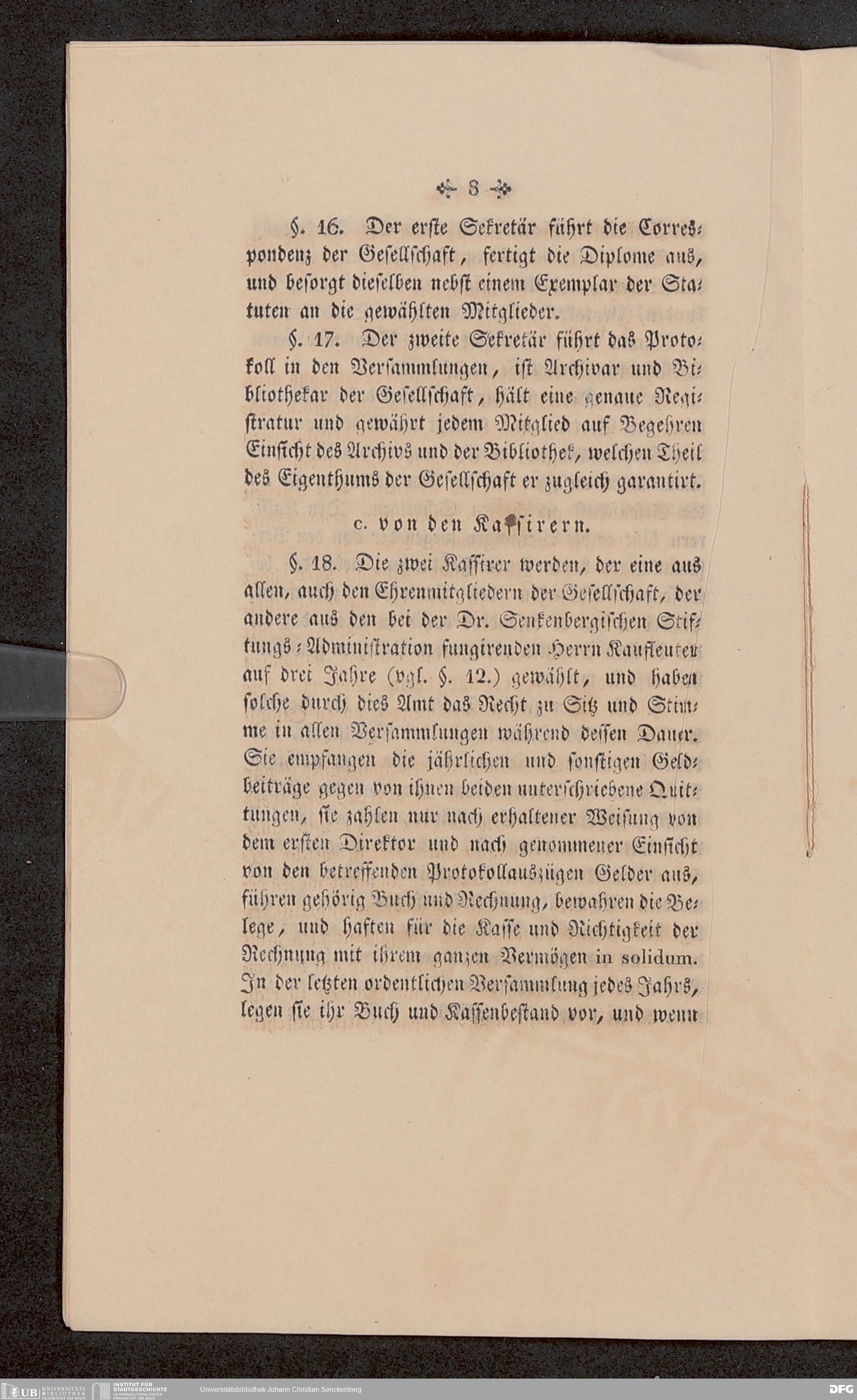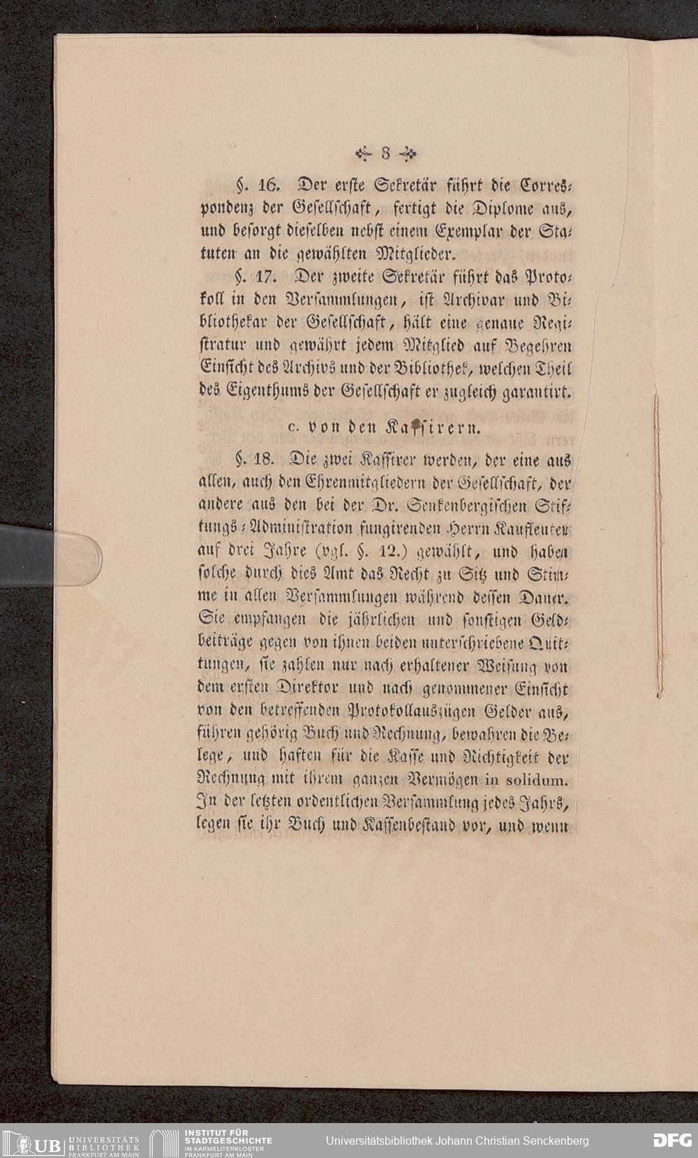 V176 Senckenberg Gesellschaft für Naturforschung, 651 - Statuten der Senckenbergischen naturforschenden Gesellschaft zu Frankfurt am Main in der revidierten Fassung vom August 1821