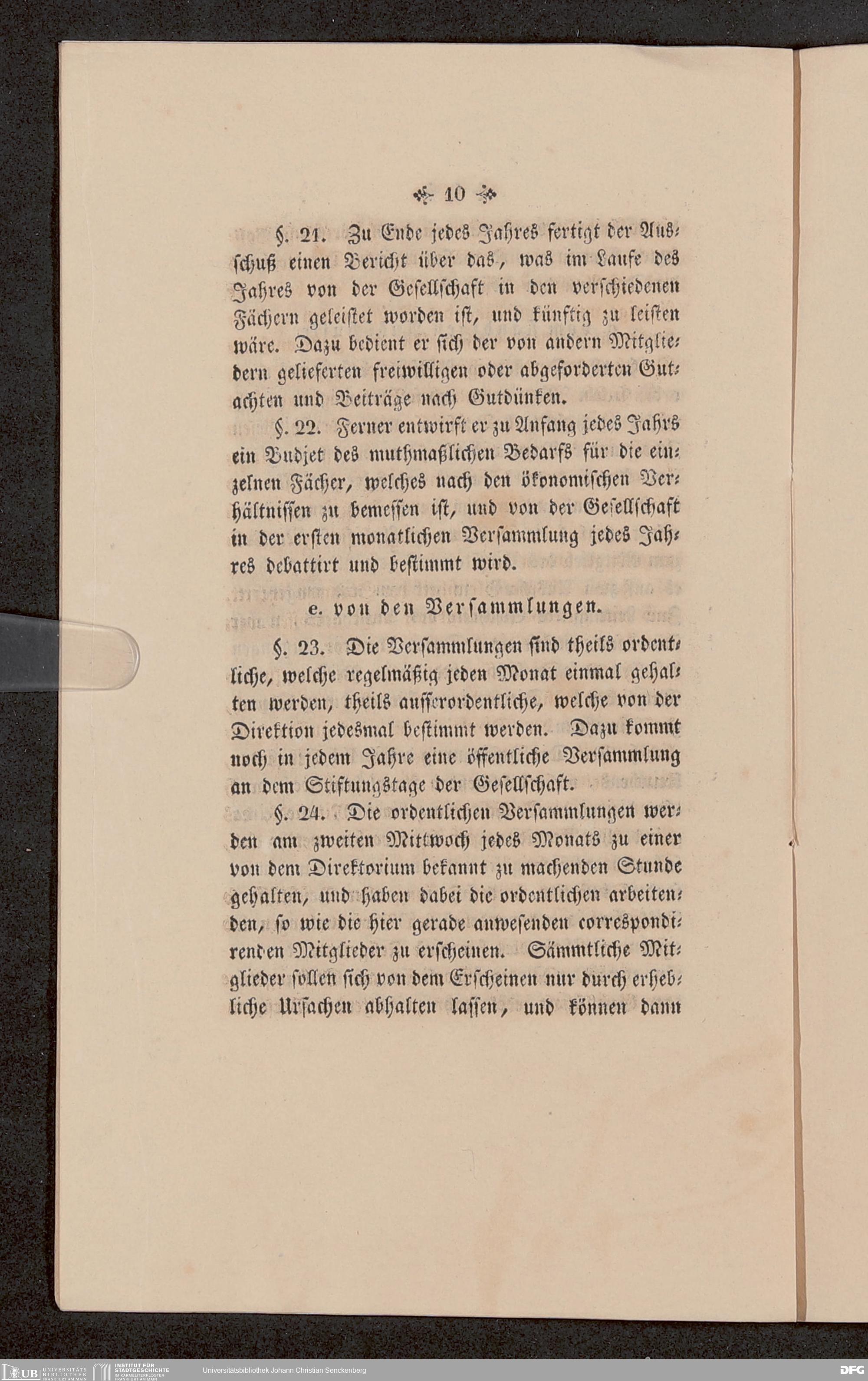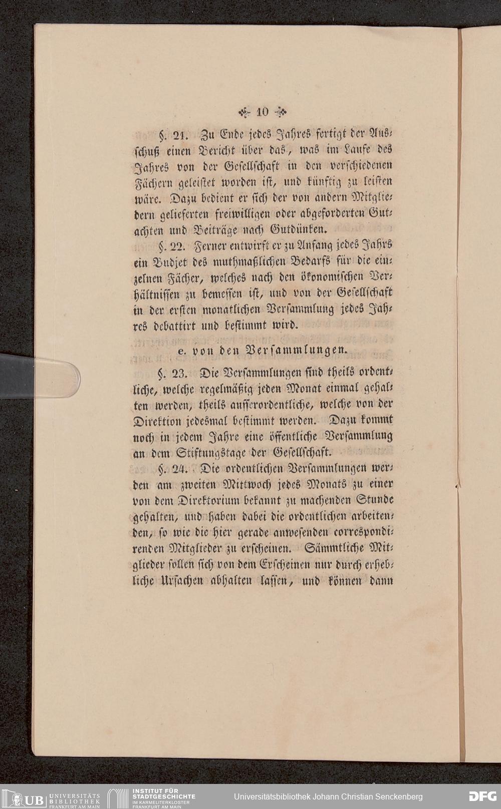 V176 Senckenberg Gesellschaft für Naturforschung, 651 - Statuten der Senckenbergischen naturforschenden Gesellschaft zu Frankfurt am Main in der revidierten Fassung vom August 1821