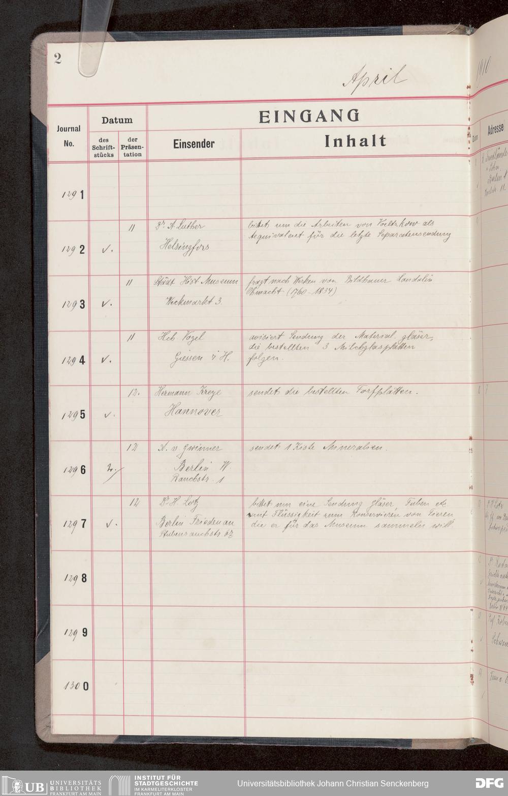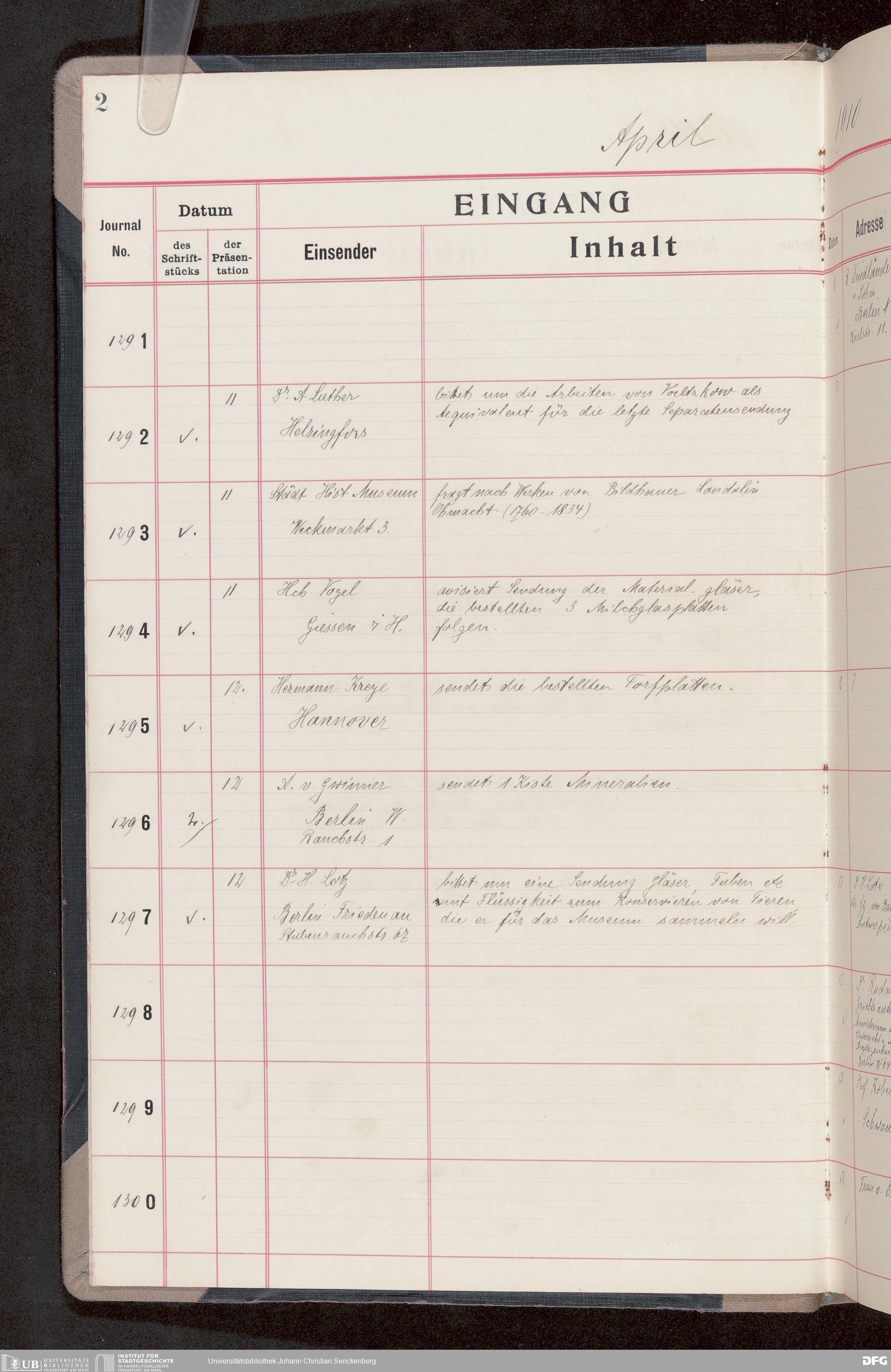 V176 Senckenberg Gesellschaft für Naturforschung, 682 - Journal der eingegangenen und ausgegangenen Briefe