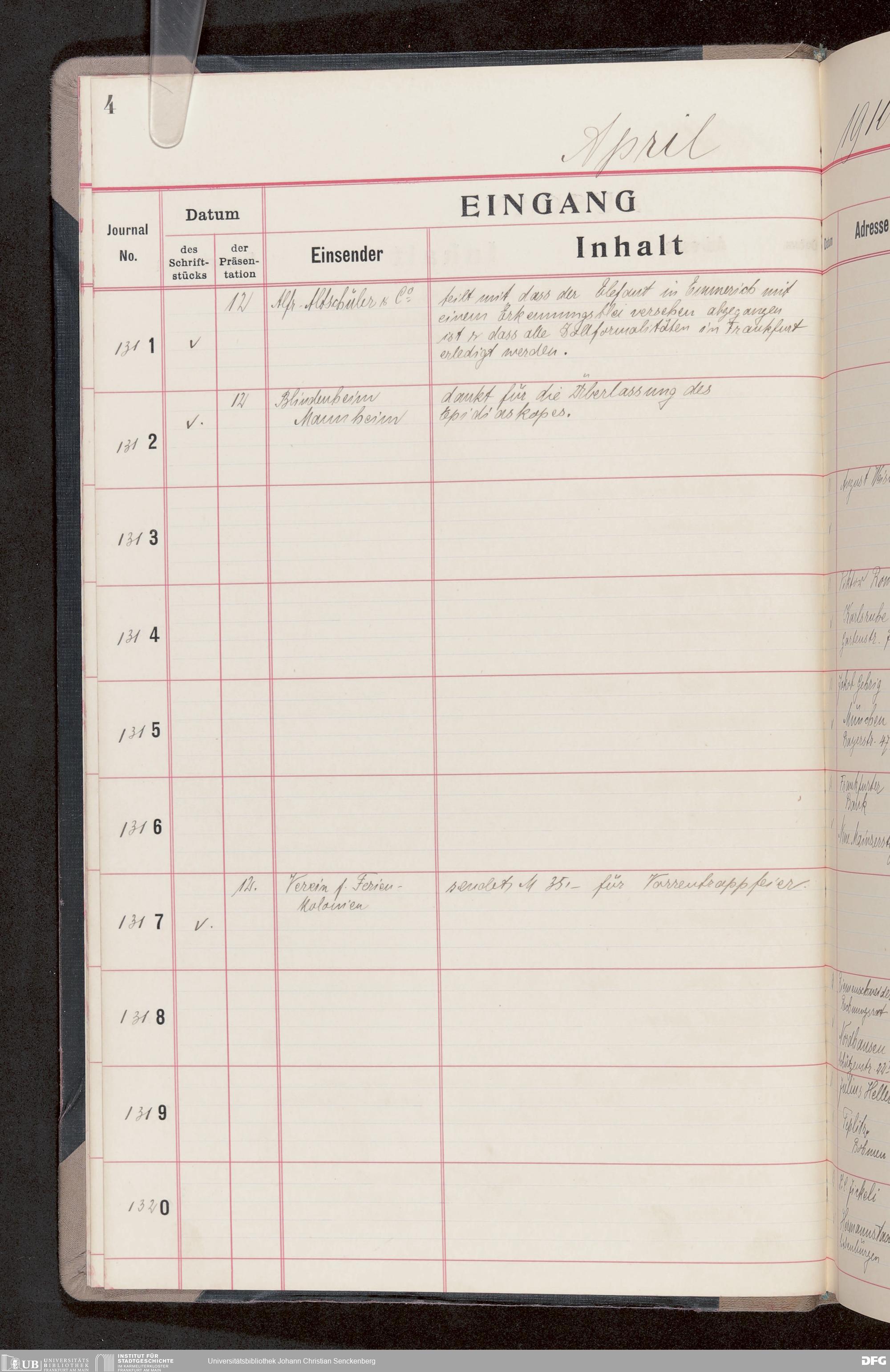 V176 Senckenberg Gesellschaft für Naturforschung, 682 - Journal der eingegangenen und ausgegangenen Briefe