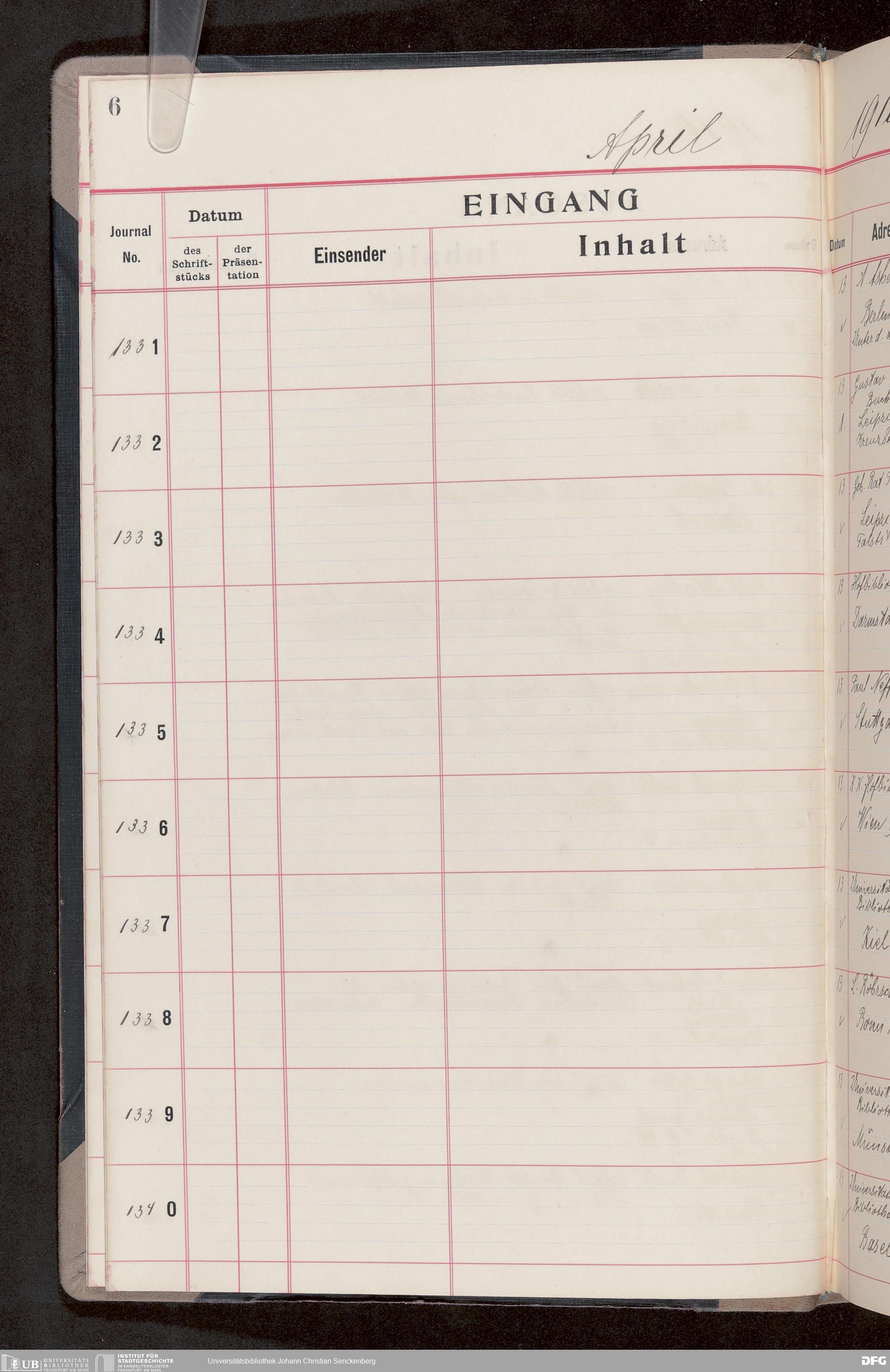 V176 Senckenberg Gesellschaft für Naturforschung, 682 - Journal der eingegangenen und ausgegangenen Briefe